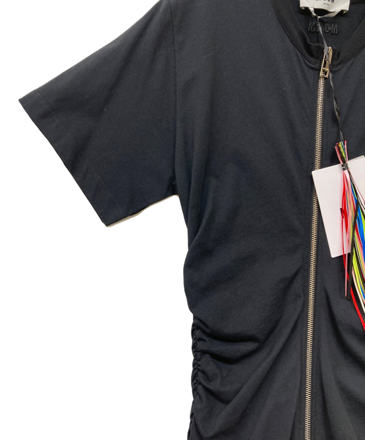• MSGM(エムエスジーエム)MSGM (エムエスジーエム) Gathered-side zip-up dress(ギャザード サイド ジップアップ ドレス) ブラック サイズ:sizeSの古着・服飾アイテム 襟元小スレ有