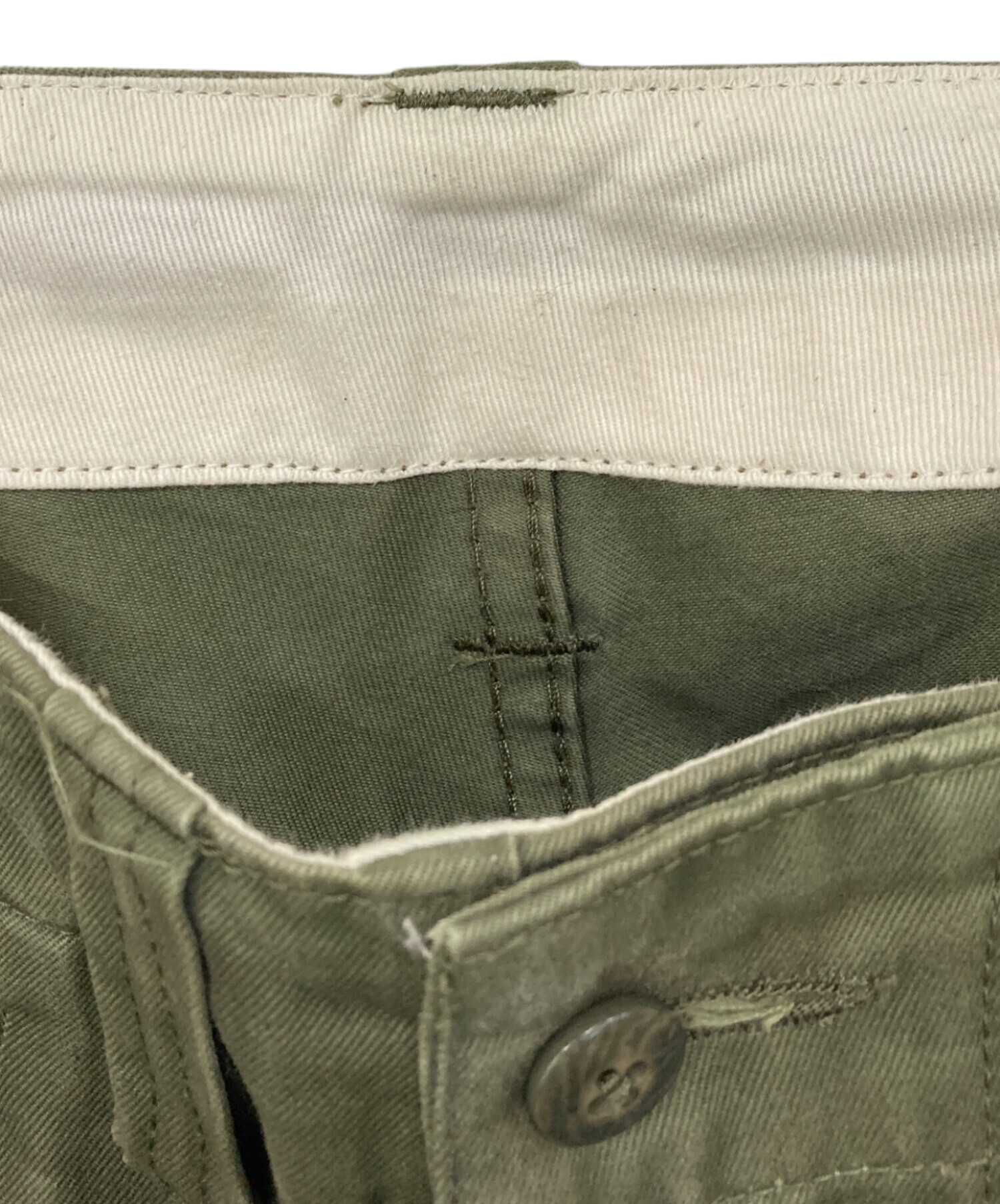 • E.TAUTZ(イートーツ)E.TAUTZ (イートーツ) ワイドチノパン 96-04-84-04027 カーキ サイズ:30の古着・服飾アイテム ウエスト汚れ(全体的)