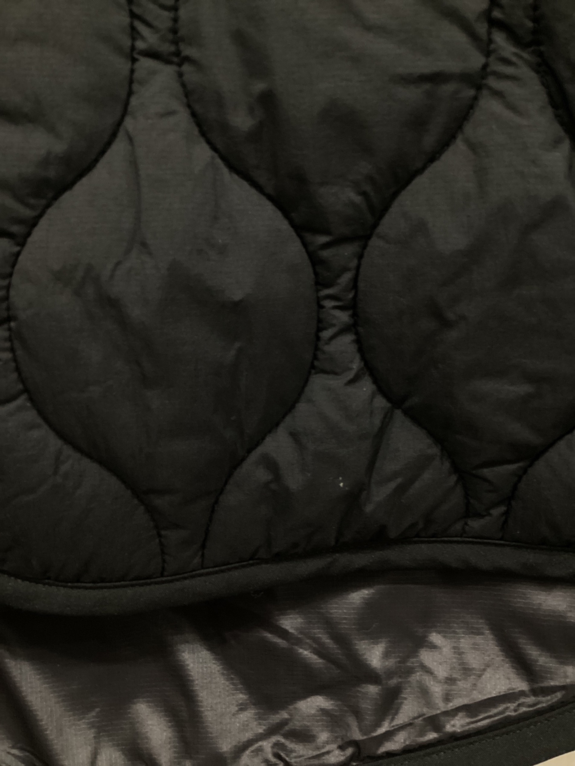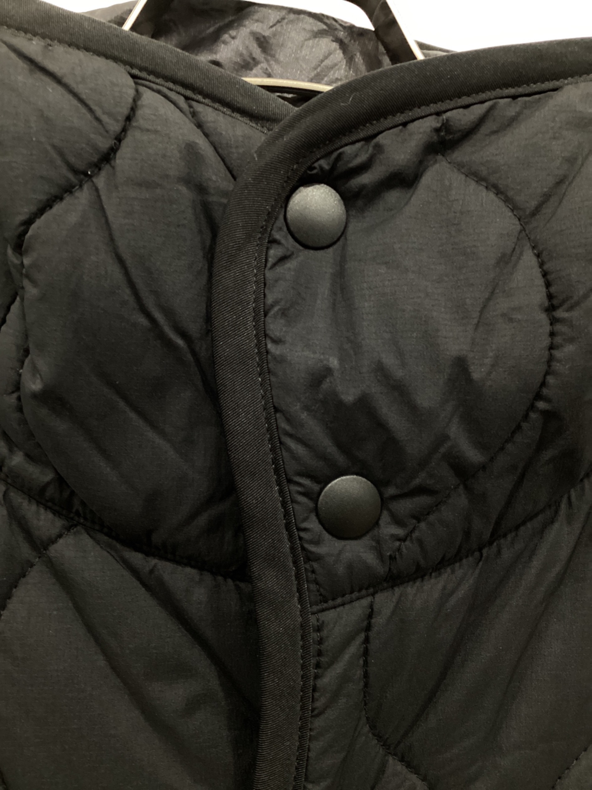 • WILD THINGS(ワイルドシングス)WILD THINGS (ワイルドシングス) W'S QUILTED LONG COAT -TAUPE/キルティングロングコート ブラック サイズ:Mの古着・服飾アイテム フロント下部ヨゴレ