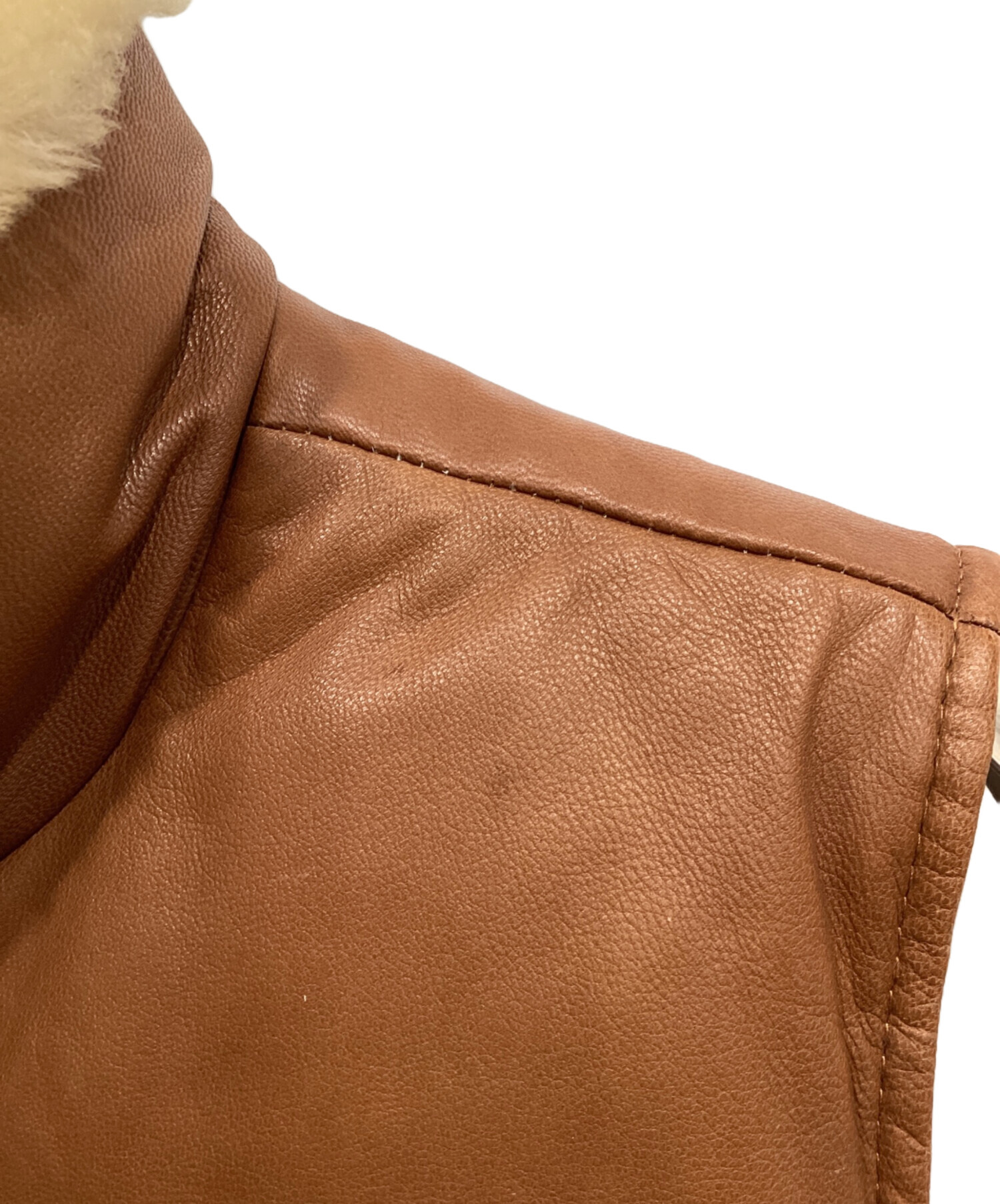 襟ボアゴートレザーベスト