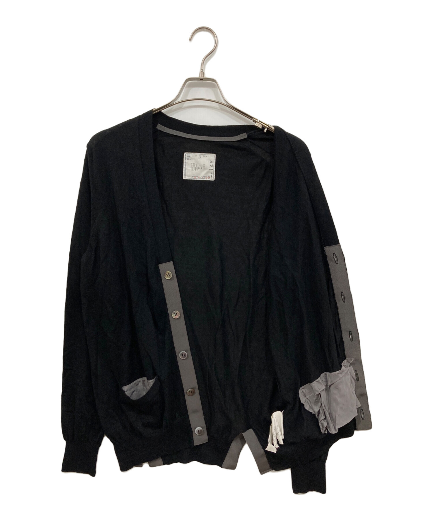 • sacai(サカイ)sacai (サカイ) ウールシルクカーディガン ネイビー サイズ:3の古着・服飾アイテム 背面小穴有