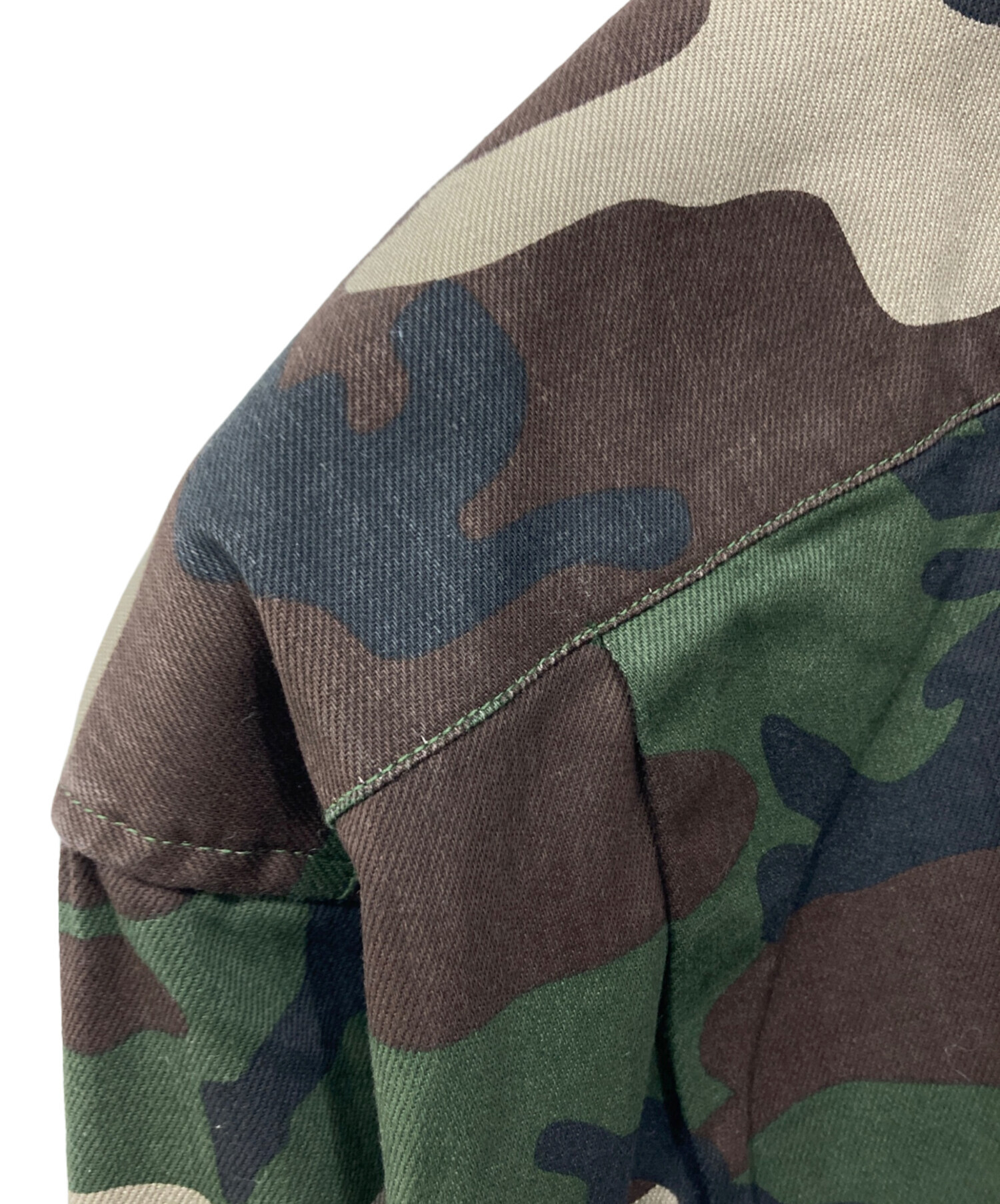 • SUPREME(シュプリーム)SUPREME (シュプリーム) ウッドランドカモデニムシャツ カーキ サイズ:Mの古着・服飾アイテム 脇下スレ