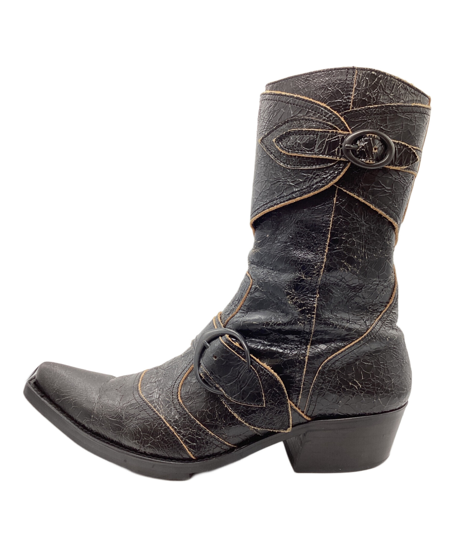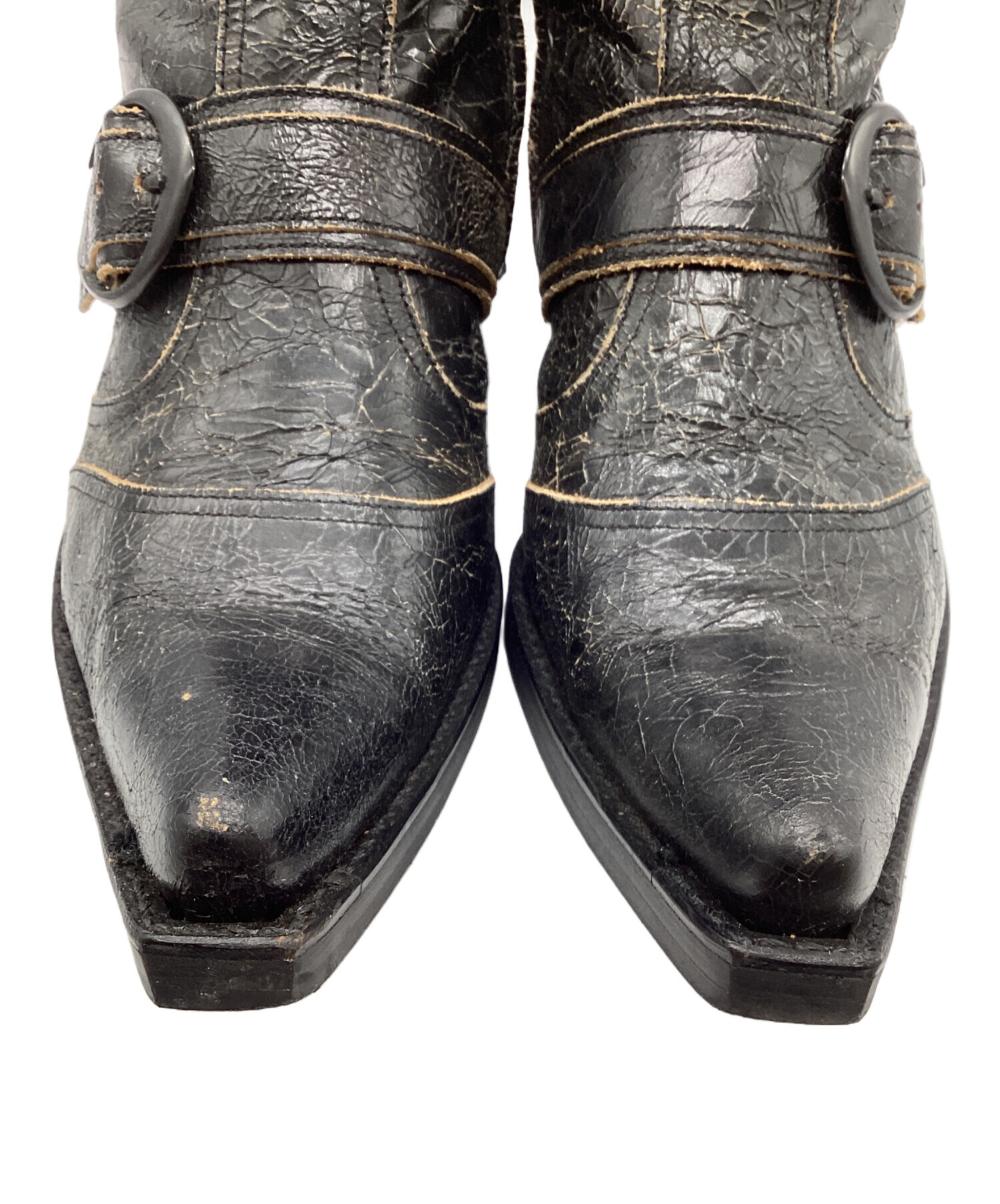 • BUFFALO BOBS(バッファローボブズ)BUFFALO BOBS (バッファローボブズ) ヒールブーツ ブラック サイズ:43の古着・服飾アイテム 各所ヒビ割れ、スレ