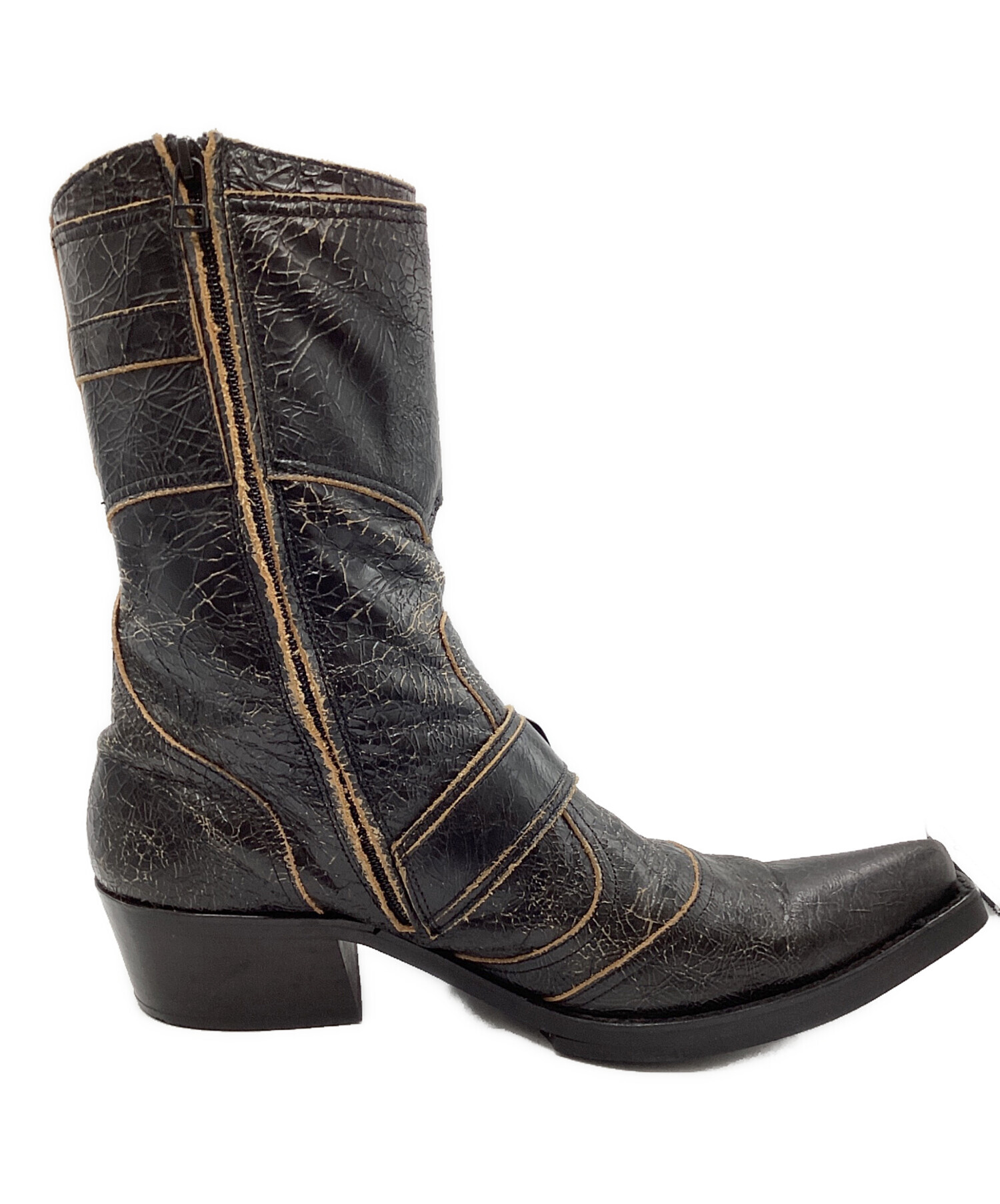 • BUFFALO BOBS(バッファローボブズ)BUFFALO BOBS (バッファローボブズ) ヒールブーツ ブラック サイズ:43の古着・服飾アイテム 各所ヒビ割れ