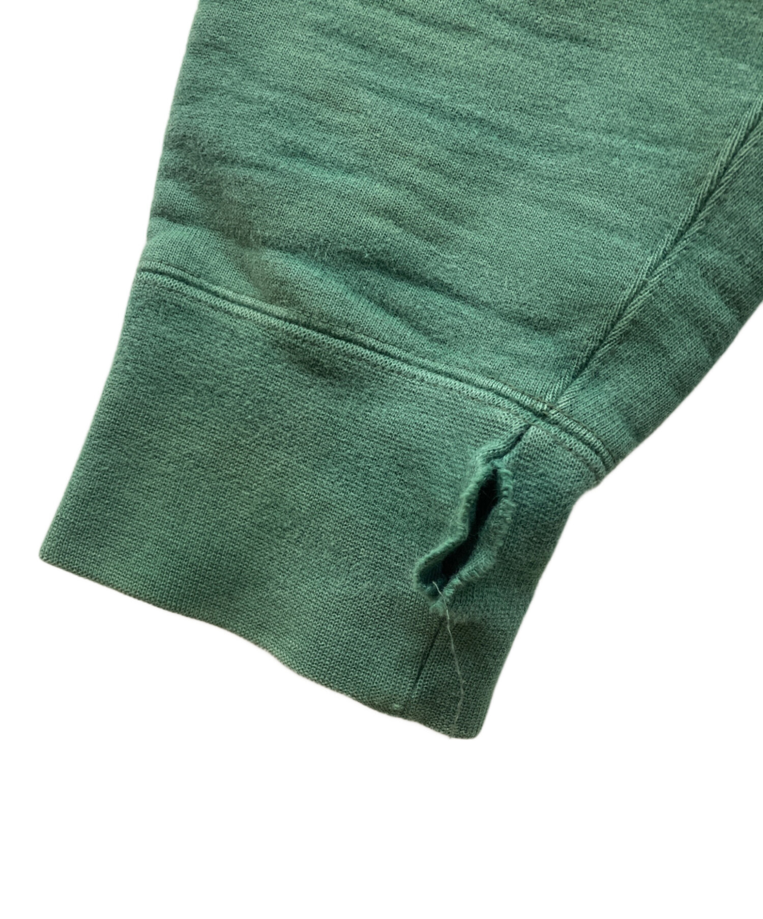 • yokosakamoto(ヨウコサカモト)YOKOSAKAMOTO (ヨウコサカモト) クルーネックスウェット グリーン サイズ:YSの古着・服飾アイテム ダメージ加工有