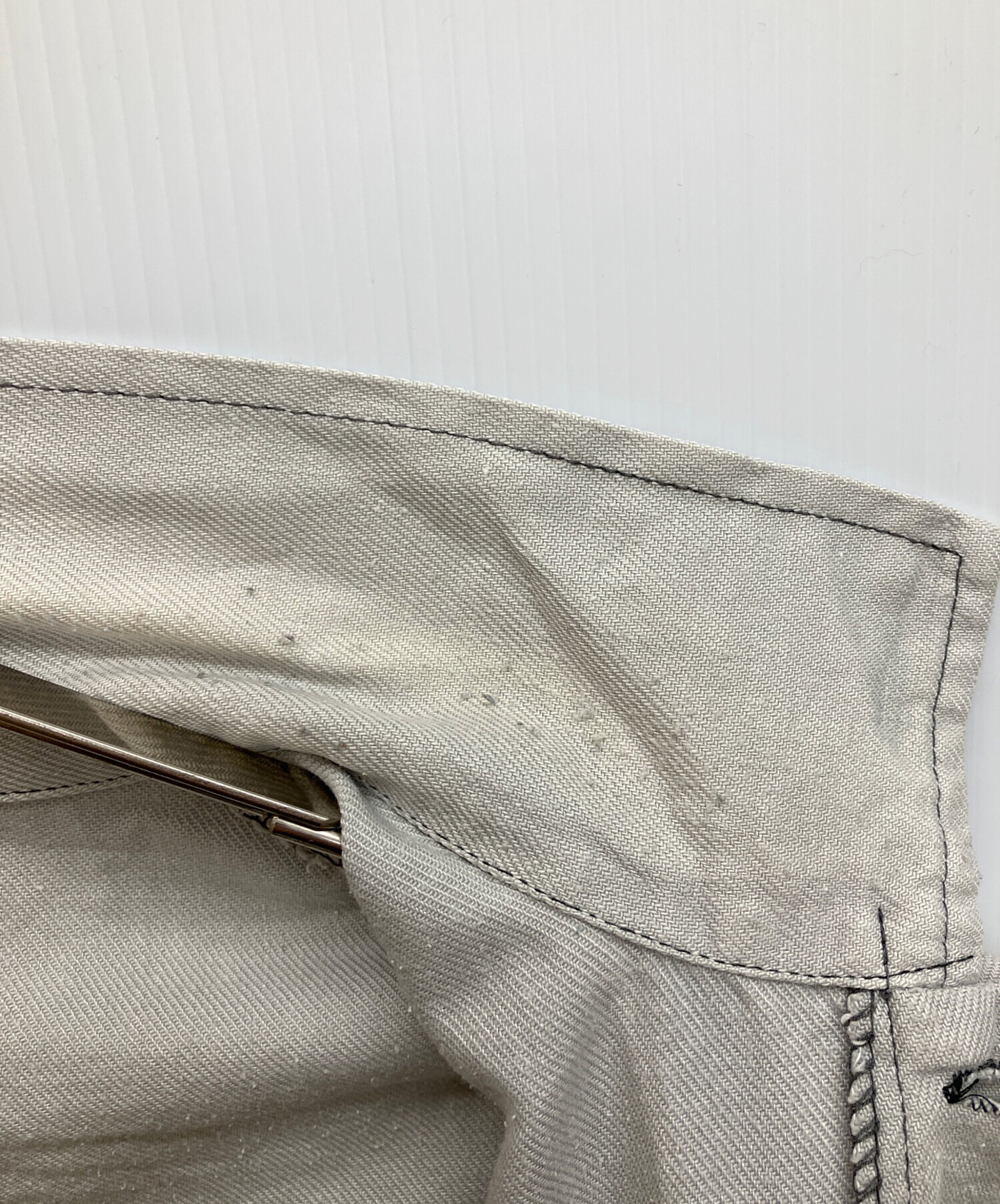 目立つシミや汚れ、におい等がある場合は商品画像や説明文にて極力表記させていただいておりますが、中古品という商品の特性上、全ての瑕疵や不備、洋服直し箇所を撮影・記載をすることは難しくなっております。また、ほとんどのアイテムは店頭と併売しておりますため、出品掲載時からコンディションが変動している場合もございます。あらかじめご了承くださいませ。