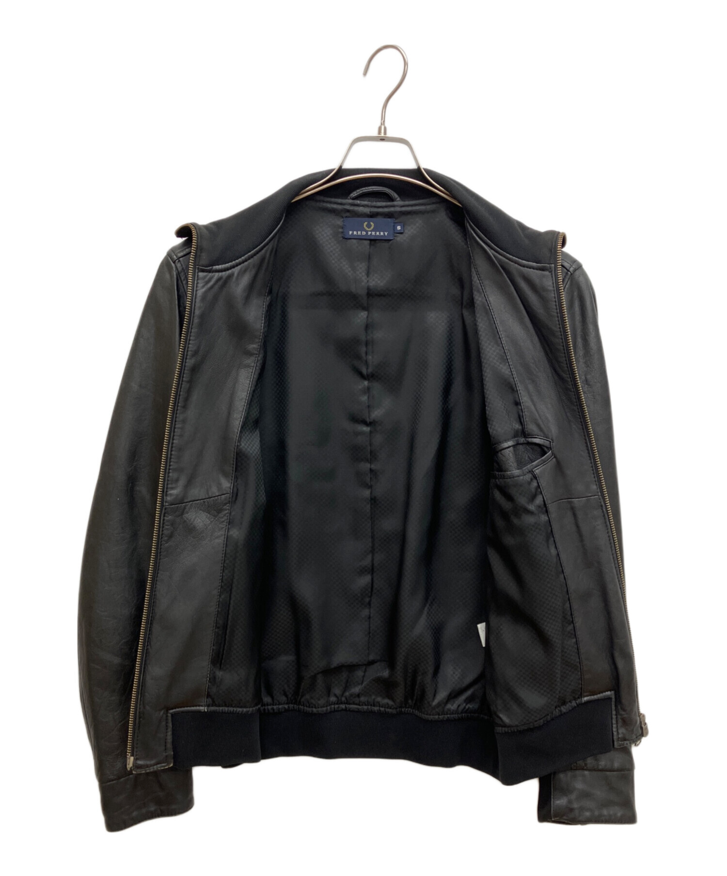• FRED PERRY(フレッドペリー)FRED PERRY (フレッドペリー) ラムレザートラックジャケット ブラック サイズ:Sの古着・服飾アイテム スレ有