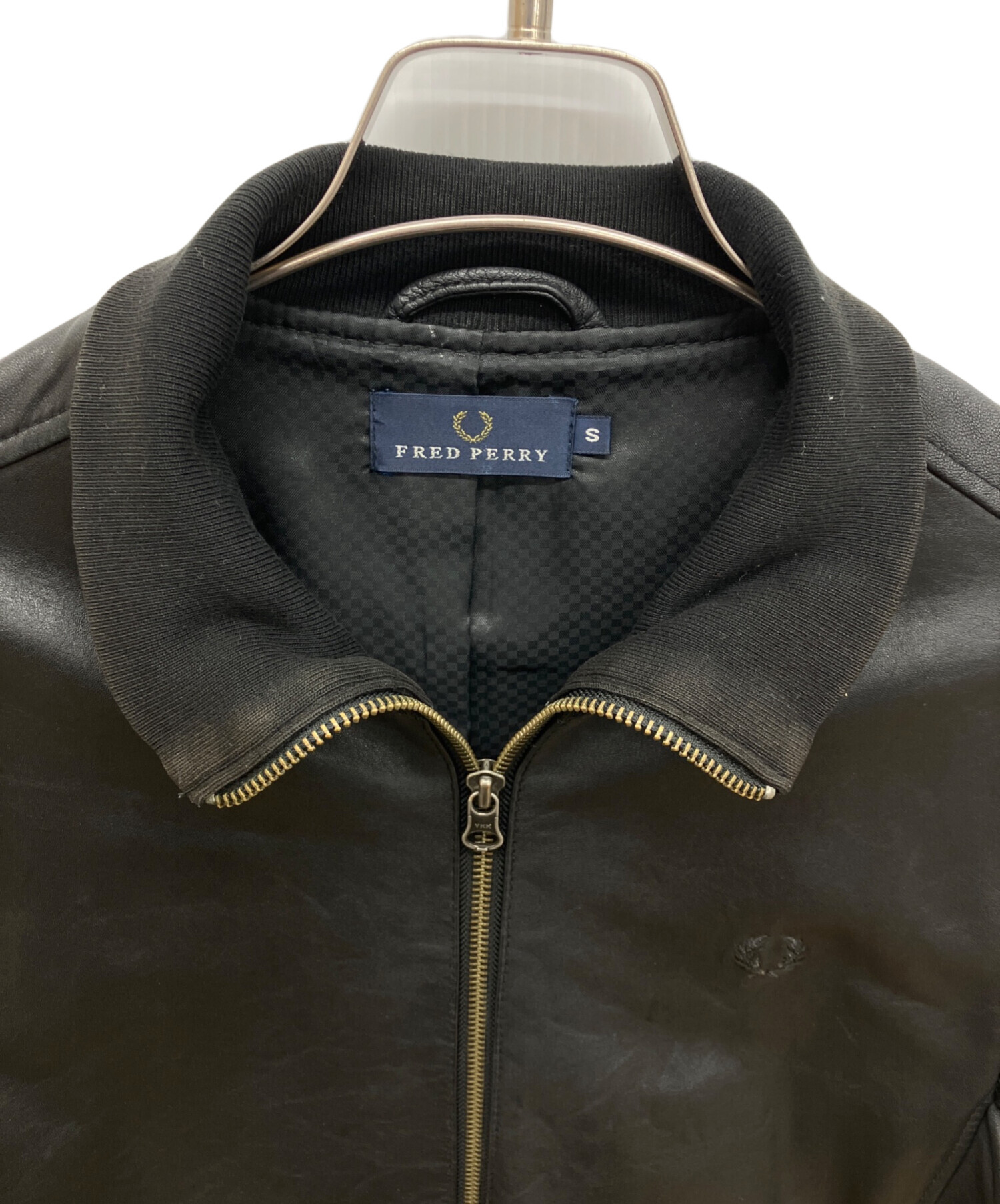 • FRED PERRY(フレッドペリー)FRED PERRY (フレッドペリー) ラムレザートラックジャケット ブラック サイズ:Sの古着・服飾アイテム 毛羽立ち有