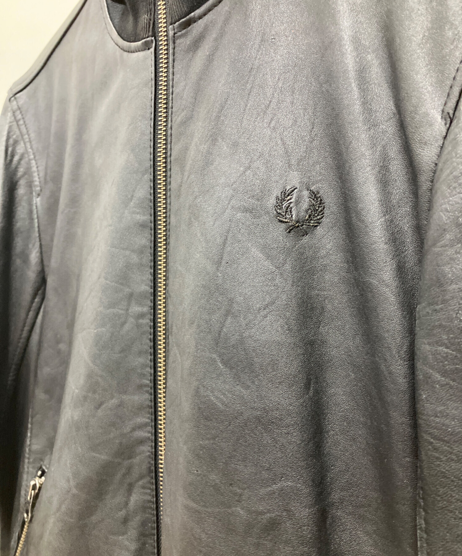 • FRED PERRY(フレッドペリー)FRED PERRY (フレッドペリー) ラムレザートラックジャケット ブラック サイズ:Sの古着・服飾アイテム 各所キズ・スレ有