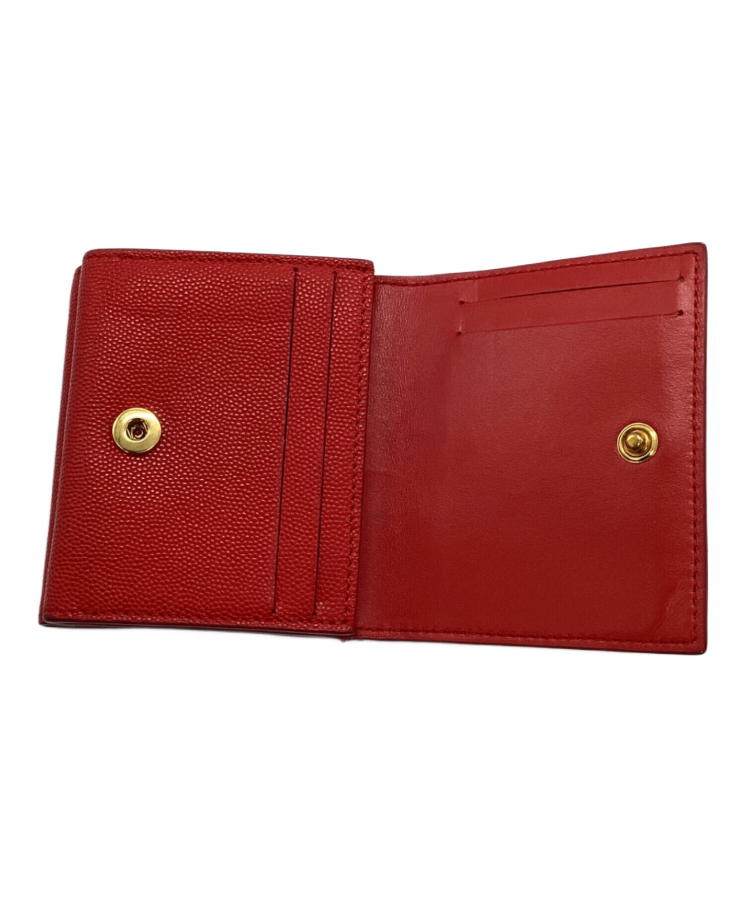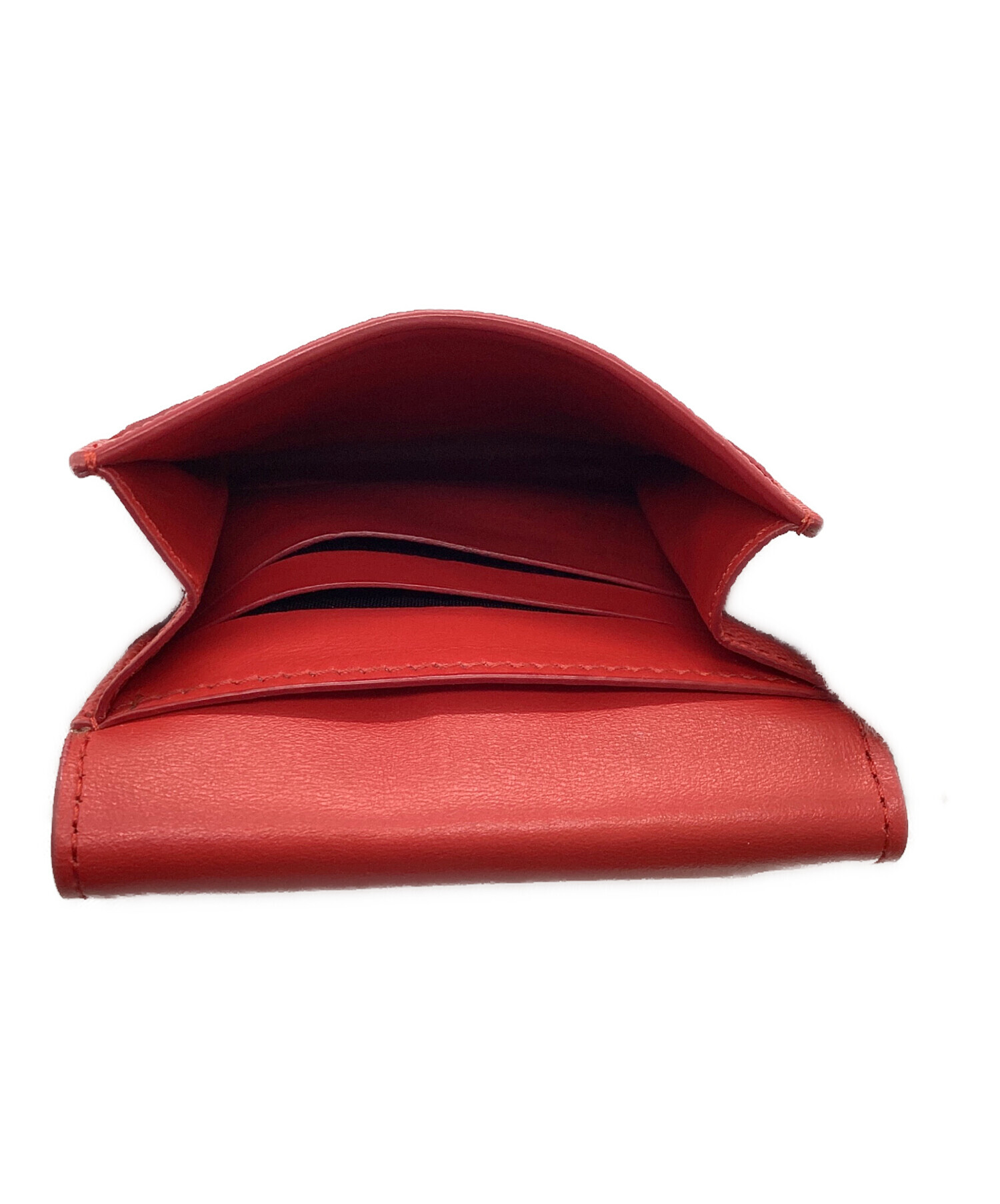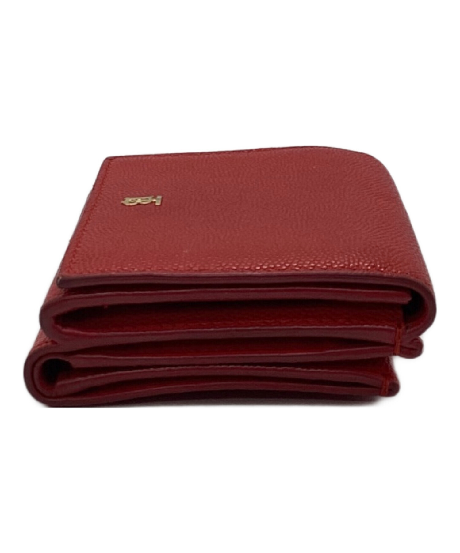 • BURBERRY(バーバリー)BURBERRY (バーバリー) TBロゴ グレイニーレザー フォールディングウォレット 折り財布 レッドの古着・服飾アイテム 右側面スレ有