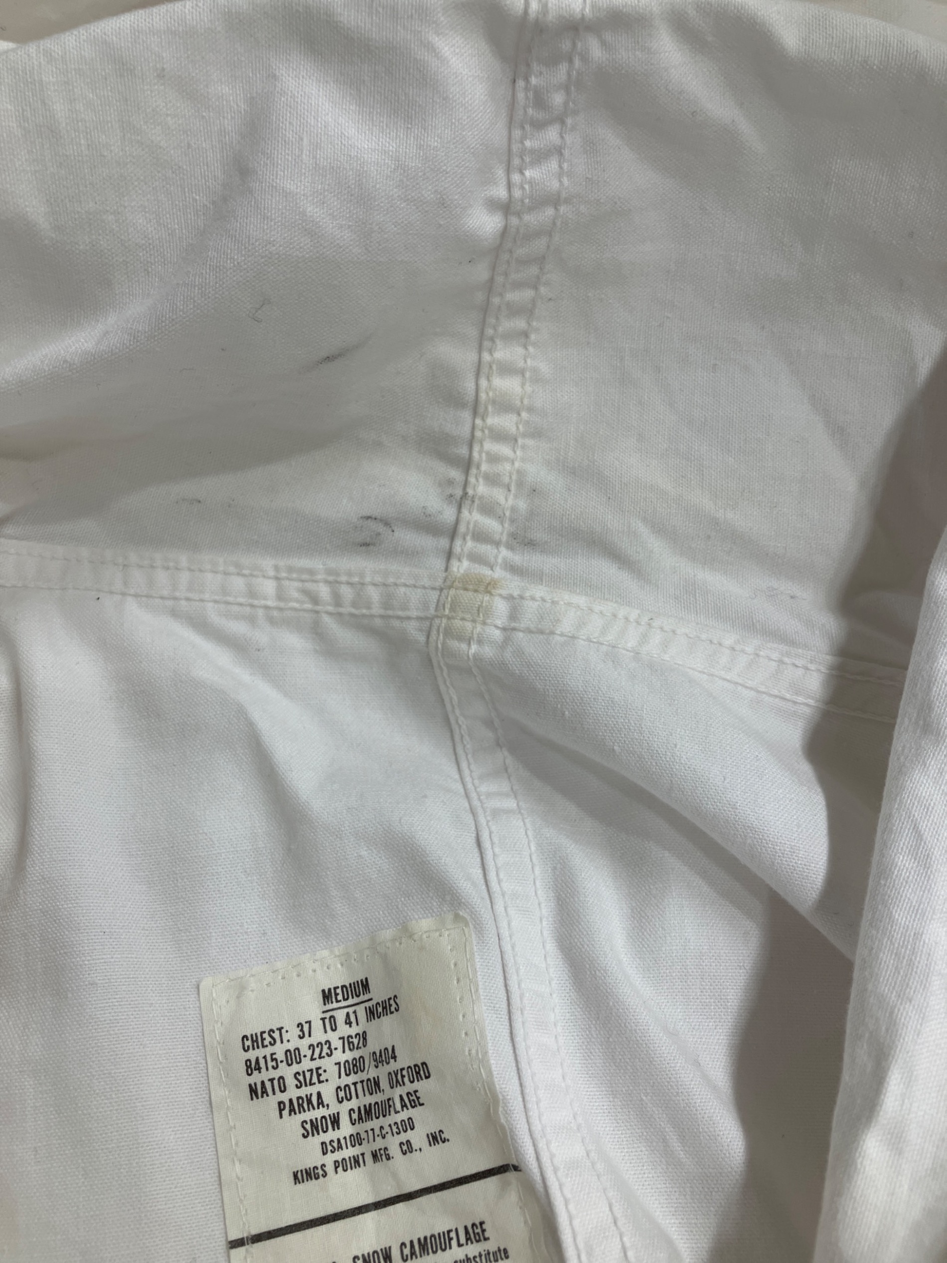 • US ARMY(ユーエスアーミー)US ARMY (ユーエスアーミー) 77年製スノーパーカ ホワイト サイズ:Mの古着・服飾アイテム 襟元ヨゴレ有