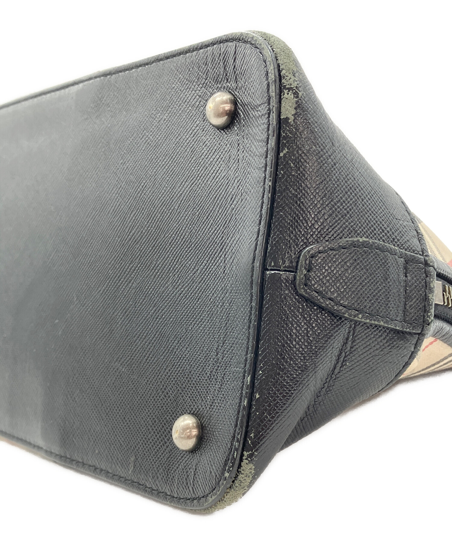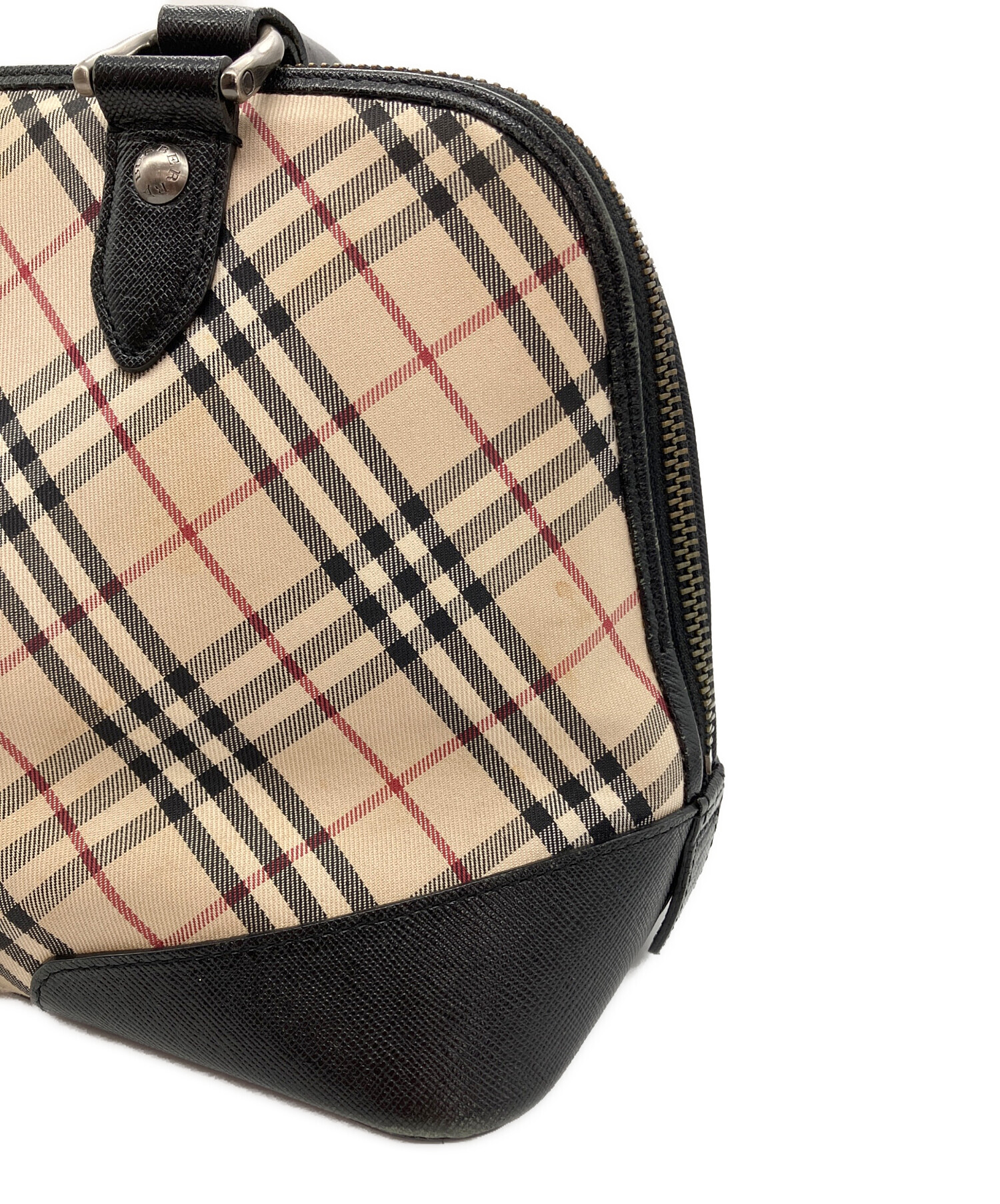• BURBERRY(バーバリー)BURBERRY (バーバリー) ノバチェック柄ハンドバッグ ベージュ×ブラックの古着・服飾アイテム 正面右側コバ割れ有