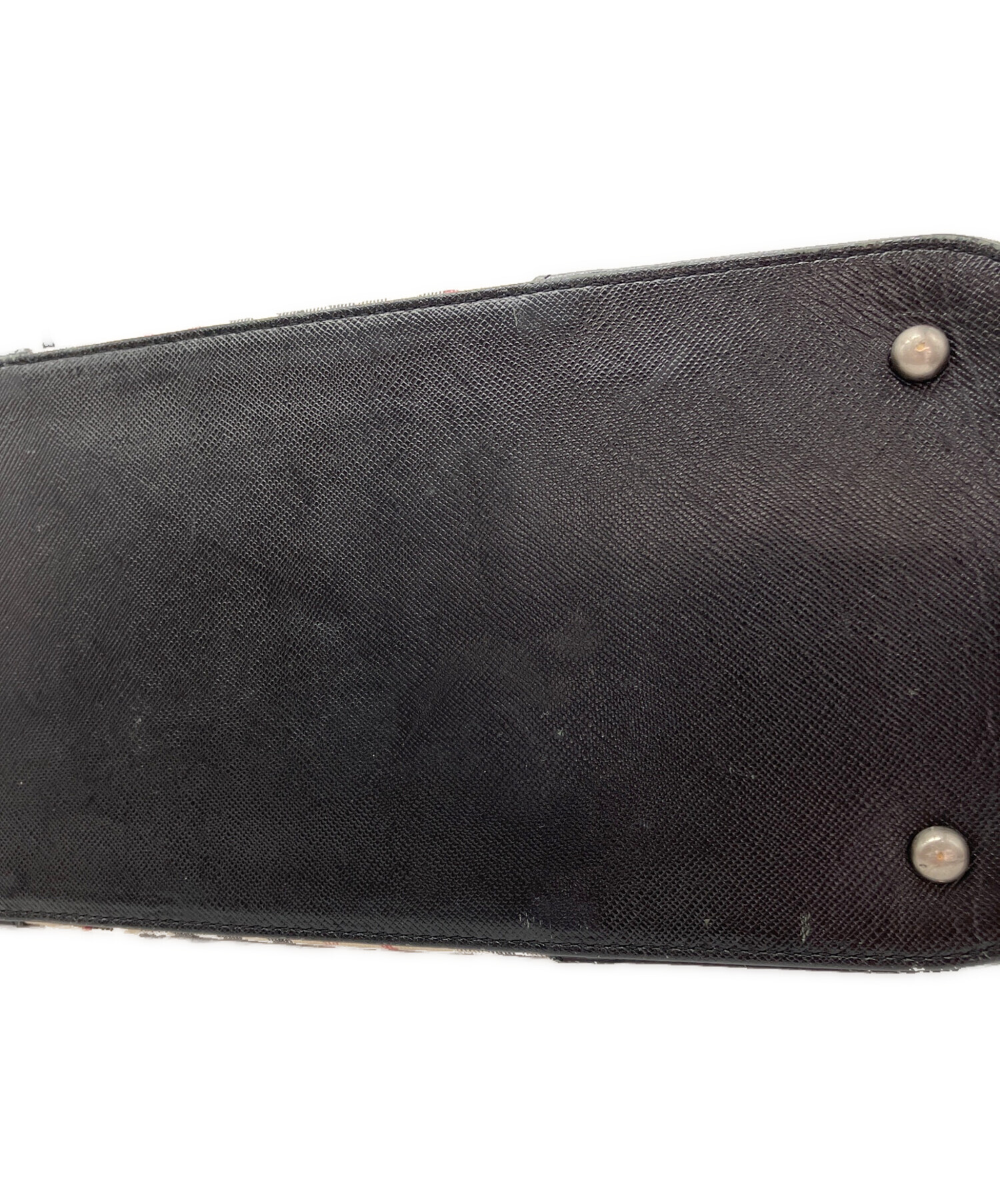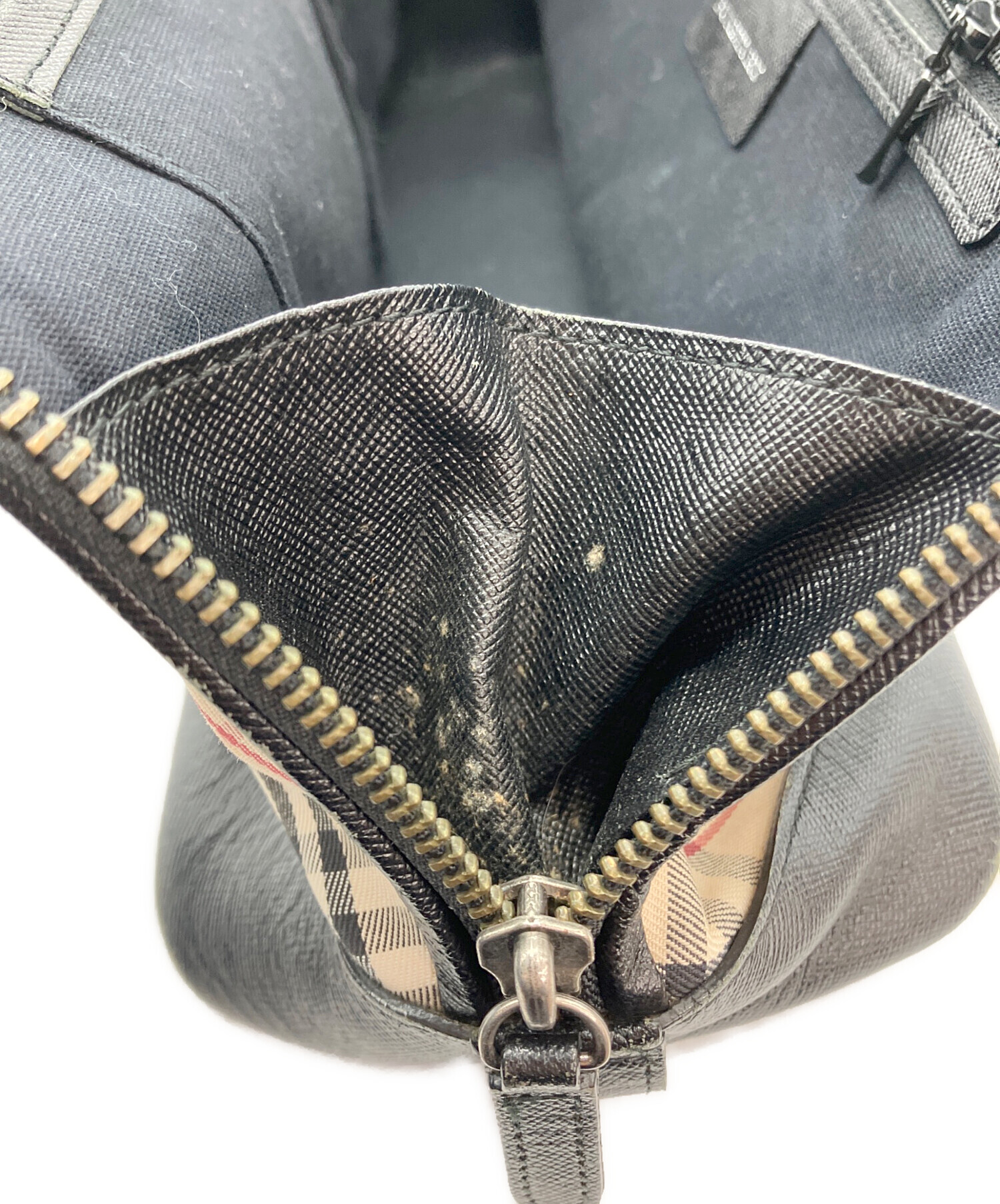 • BURBERRY(バーバリー)BURBERRY (バーバリー) ノバチェック柄ハンドバッグ ベージュ×ブラックの古着・服飾アイテム 背面右側シミ・コバ割れ有