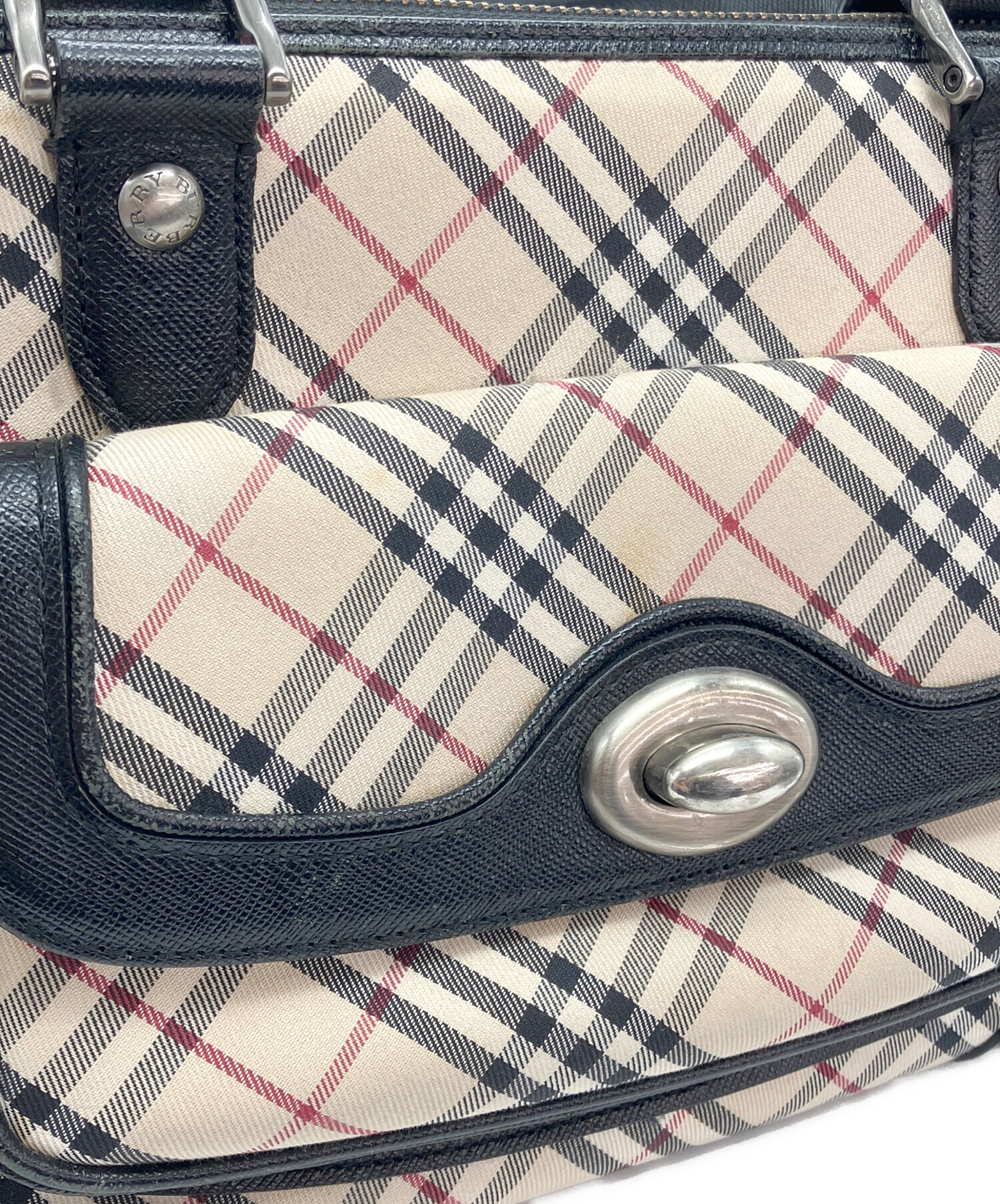 • BURBERRY(バーバリー)BURBERRY (バーバリー) ノバチェック柄ハンドバッグ ベージュ×ブラックの古着・服飾アイテム フラップ部分シミ・金具キズ有