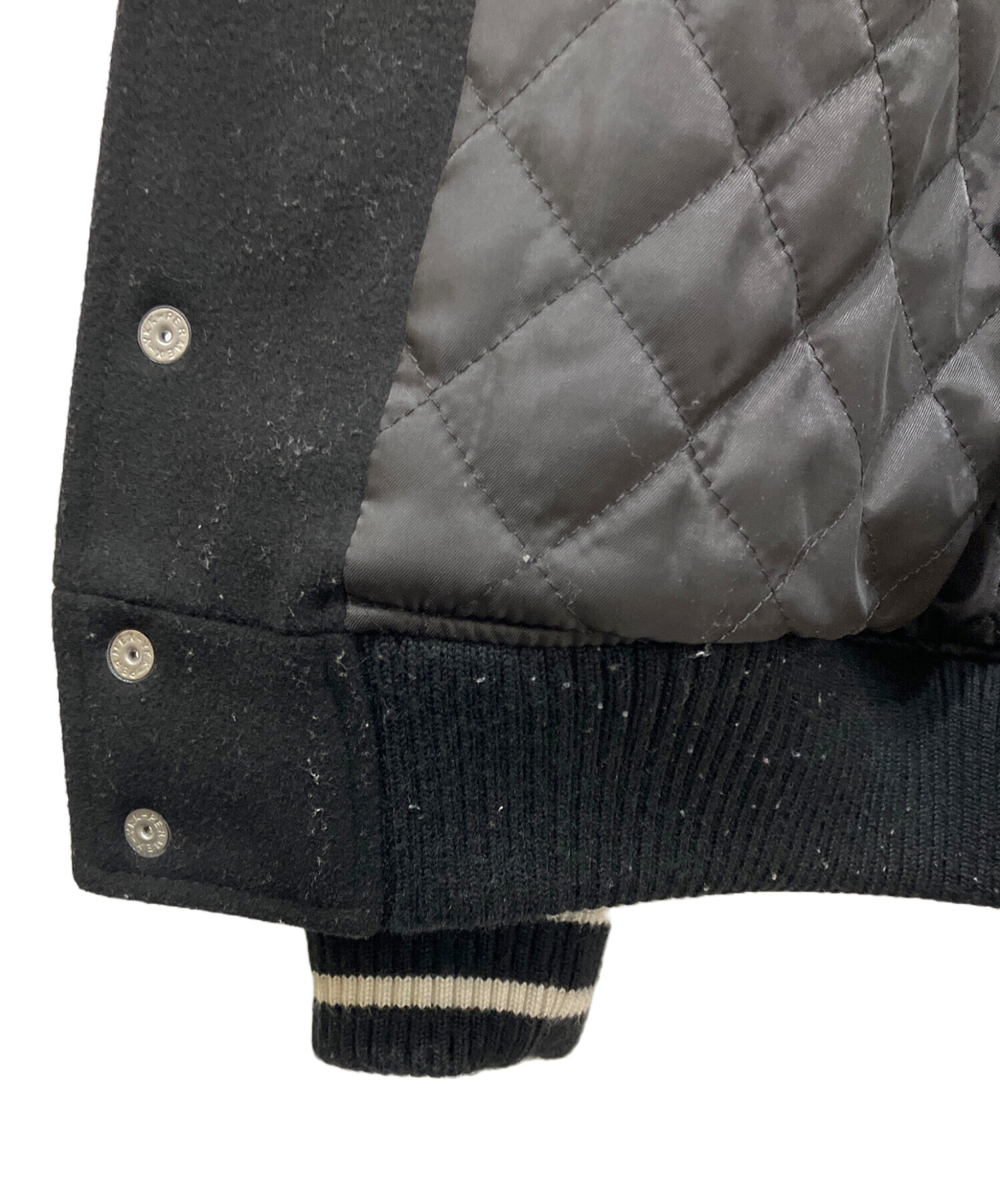 • Psycho Bunny(サイコ バニー)Psycho Bunny (サイコ バニー) アワードジャケット スタジャン ブラック サイズ:Mの古着・服飾アイテム 襟毛羽立ち有