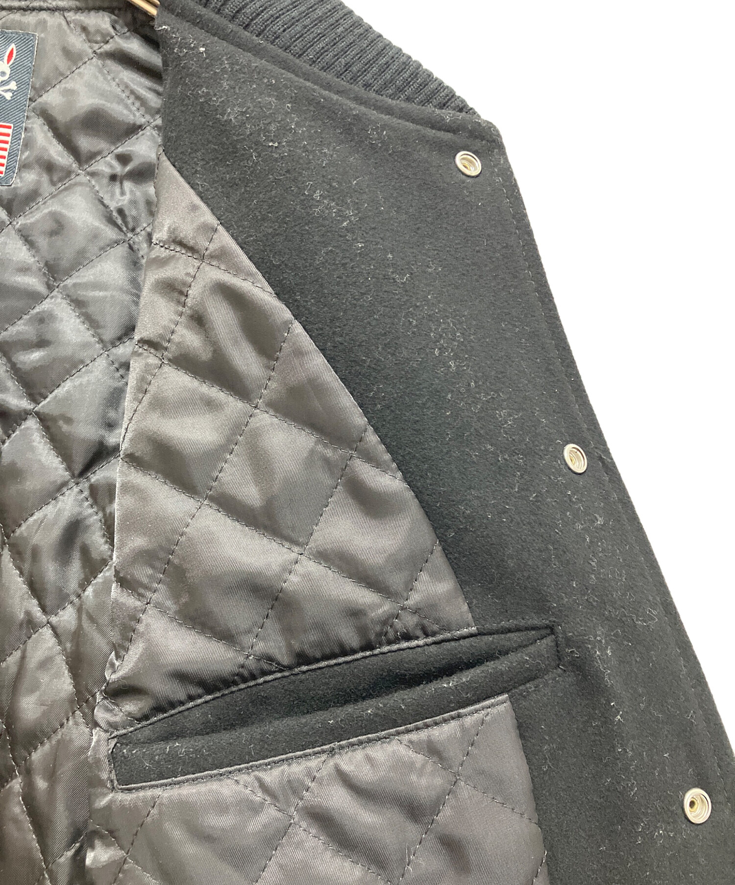 • Psycho Bunny(サイコ バニー)Psycho Bunny (サイコ バニー) アワードジャケット スタジャン ブラック サイズ:Mの古着・服飾アイテム スレヨゴレ有
