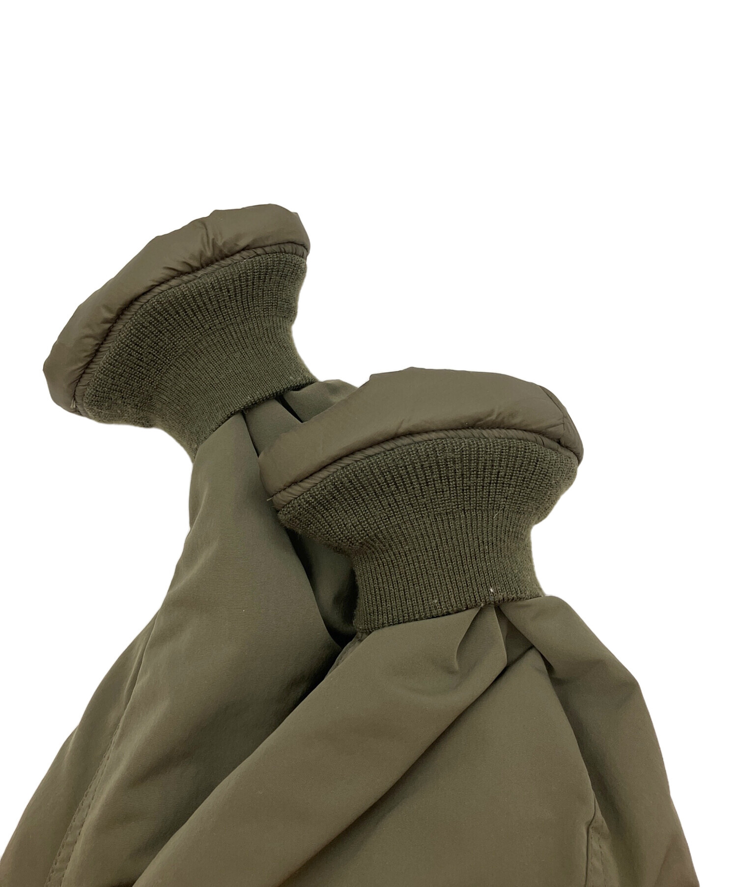 | 素材 | 表地:ポリエステル 100% 中綿:ポリエステル 100% 裏地:ポリエステル 100% (コーティング等樹脂加工) 衿、袖口、裾:アクリル 70% ウール 30% |