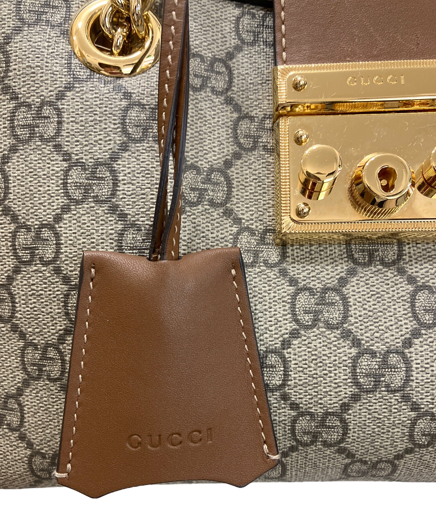 • GUCCI(グッチ)GUCCI (グッチ) パドロック ミディアム トップハンドル 2WAYバッグ ブラウンの古着・服飾アイテム ストラップ剥がれ有