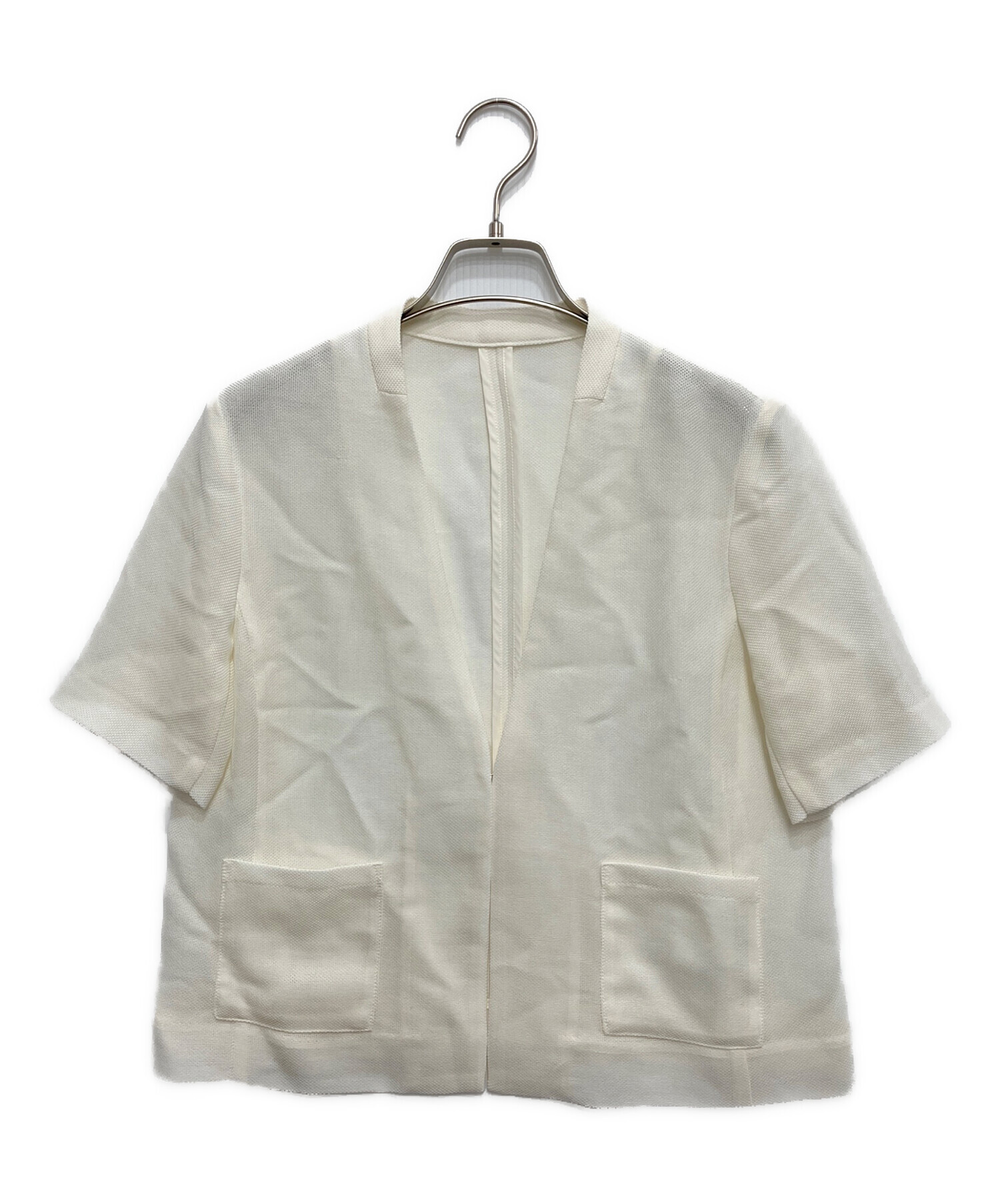 • COHINA(コヒナ)COHINA (コヒナ) ハーフスリーブノーカラーメッシュジャケット アイボリー サイズ:FREEの古着・服飾アイテム フロント左襟付近ほつれ有