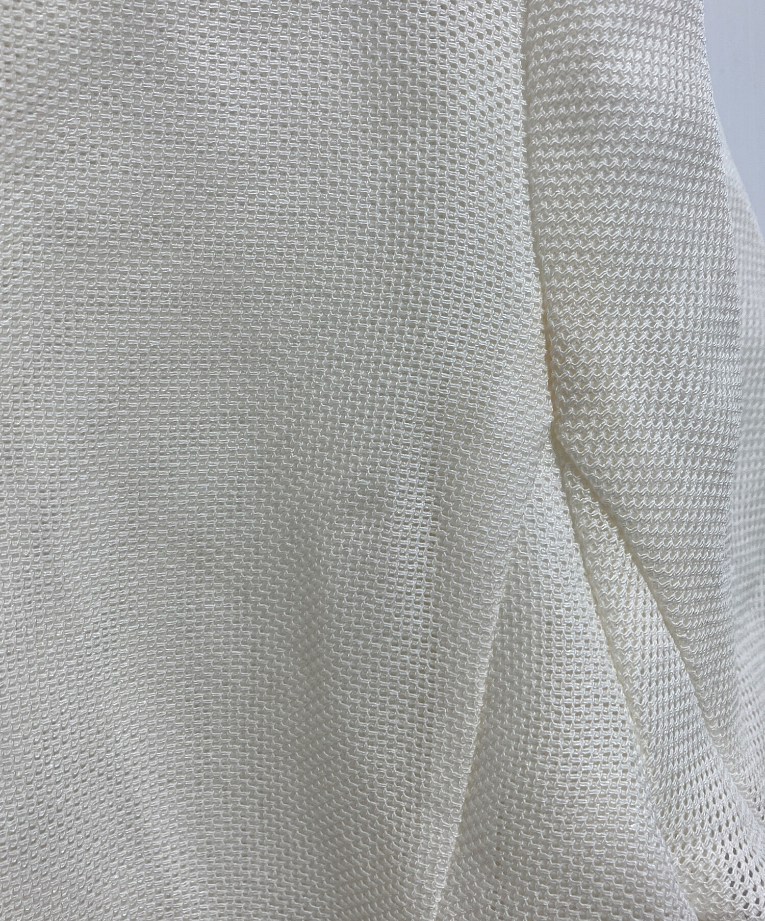 • COHINA(コヒナ)COHINA (コヒナ) ハーフスリーブノーカラーメッシュジャケット アイボリー サイズ:FREEの古着・服飾アイテム フロント右側ほつれ、小ヨゴレ有