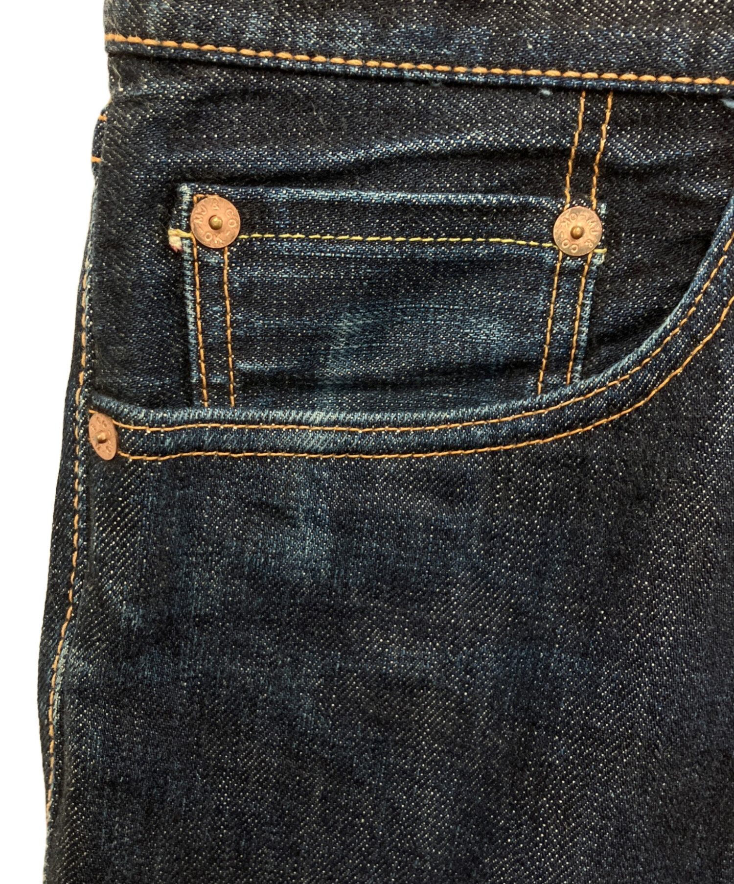 • MOMOTARO JEANS(桃太郎ジーンズ)MOMOTARO JEANS (桃太郎ジーンズ) デニムパンツ インディゴ サイズ:91cm(W36)の古着・服飾アイテム フロント左ポケット色落ち有