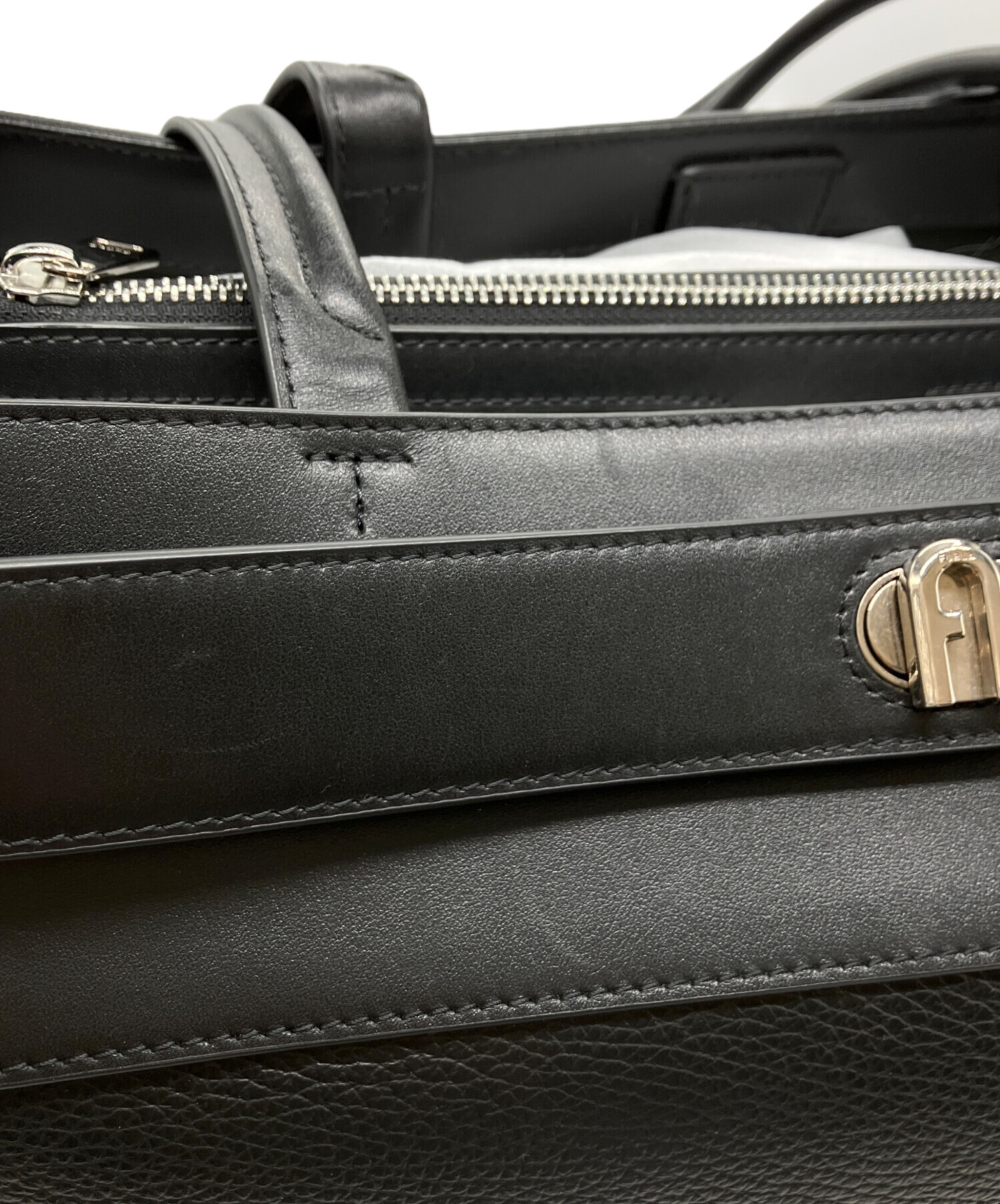 • FURLA(フルラ)FURLA (フルラ) CRONOレザートートバッグ ブラックの古着・服飾アイテム 角スレ有
