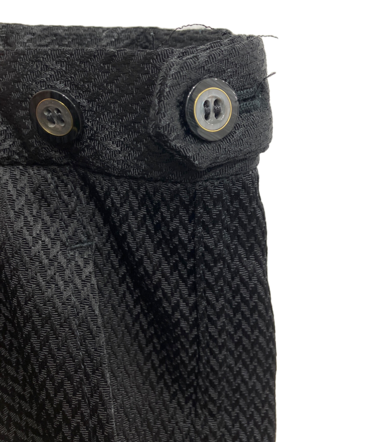 • COMME des GARCONS HOMME PLUS(コムデギャルソンオムプリュス)COMME des GARCONS HOMME PLUS (コムデギャルソンオムプリュス) ジャガード4ボタンセットアップ ブラック サイズ:Sの古着・服飾アイテム パンツ背面右側ダメージ有