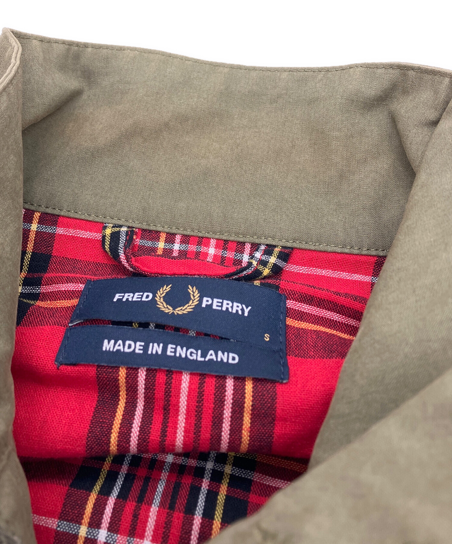 • FRED PERRY(フレッドペリー)FRED PERRY (フレッドペリー) Harrington Jacket オリーブ サイズ:SIZE Sの古着・服飾アイテム 袖口裏ヨゴレ有