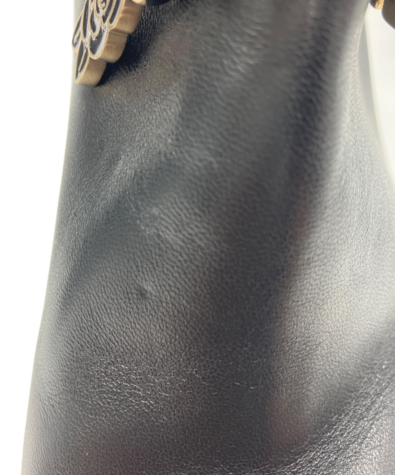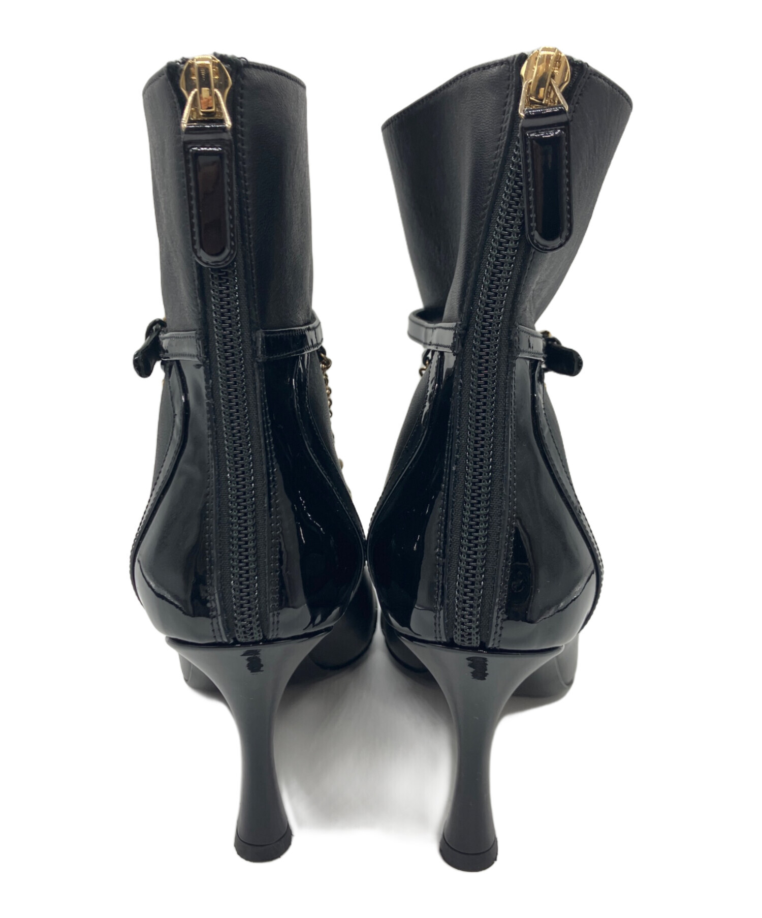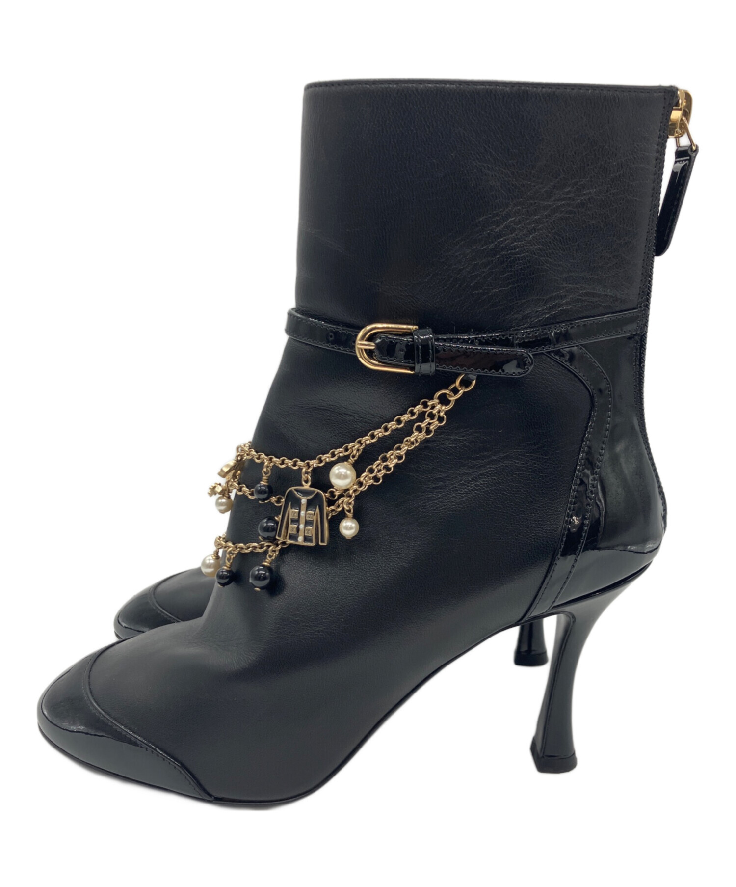 • CHANEL(シャネル)CHANEL (シャネル) ビジューココマークレザージップアップアーモンドトゥショートブーツ ブラック サイズ:37C37Cの古着・服飾アイテム シワ有