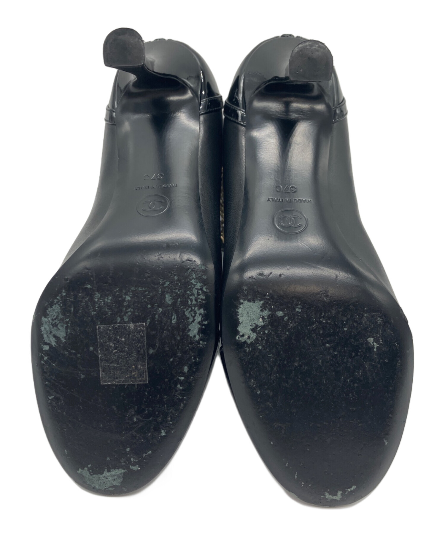 • CHANEL(シャネル)CHANEL (シャネル) ビジューココマークレザージップアップアーモンドトゥショートブーツ ブラック サイズ:37C37Cの古着・服飾アイテム キズ有