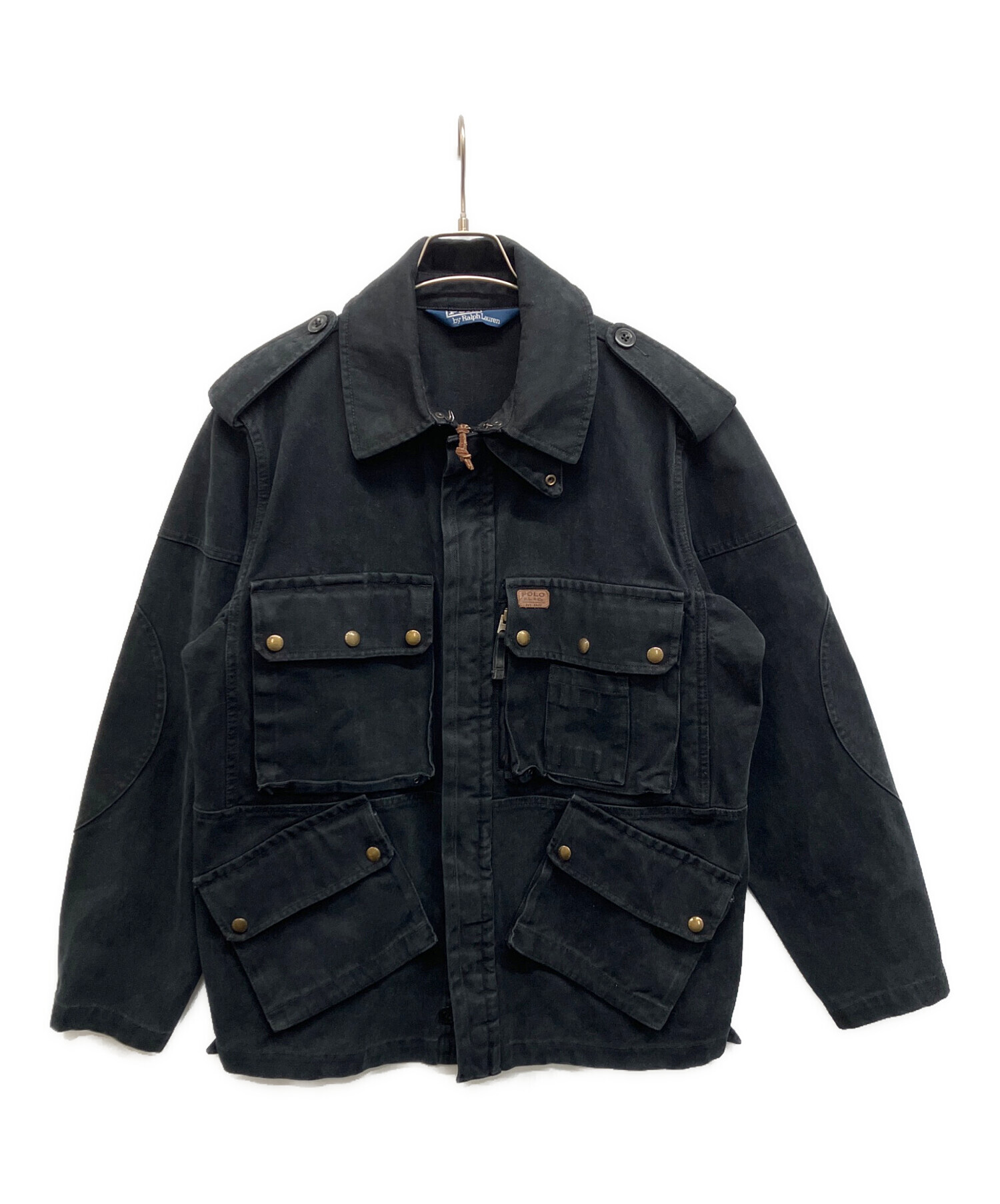 • POLO RALPH LAUREN(ポロ・ラルフローレン)POLO RALPH LAUREN (ポロ・ラルフローレン) マルチポケットハンティングジャケット ブラック サイズ:Lの古着・服飾アイテム 襟ヨゴレ有