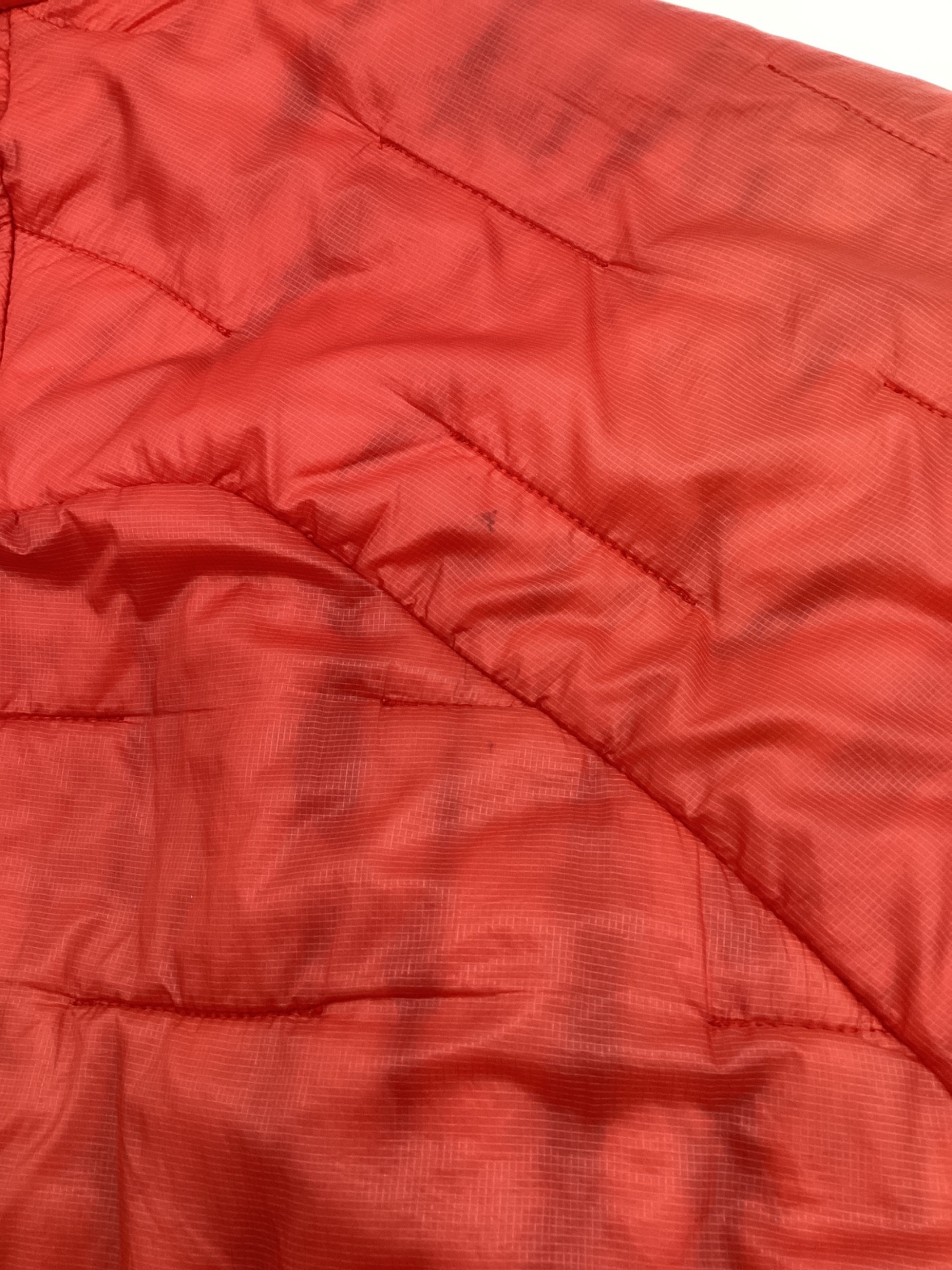 | 状態 | こちらの商品は中古品の為、右腕に小穴、左腕に小穴補修跡がございます。また全体的にダウンのヨレ、中綿の突出部や汚れが各所に見受けられます。店頭にて展示販売を行っている為、記載に無い細かなキズ、汚れが見受けられる場合がございます。 |
