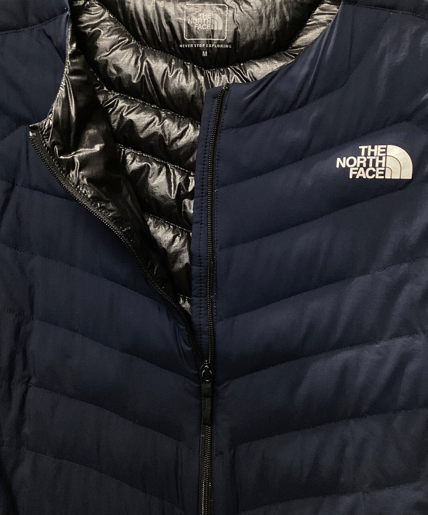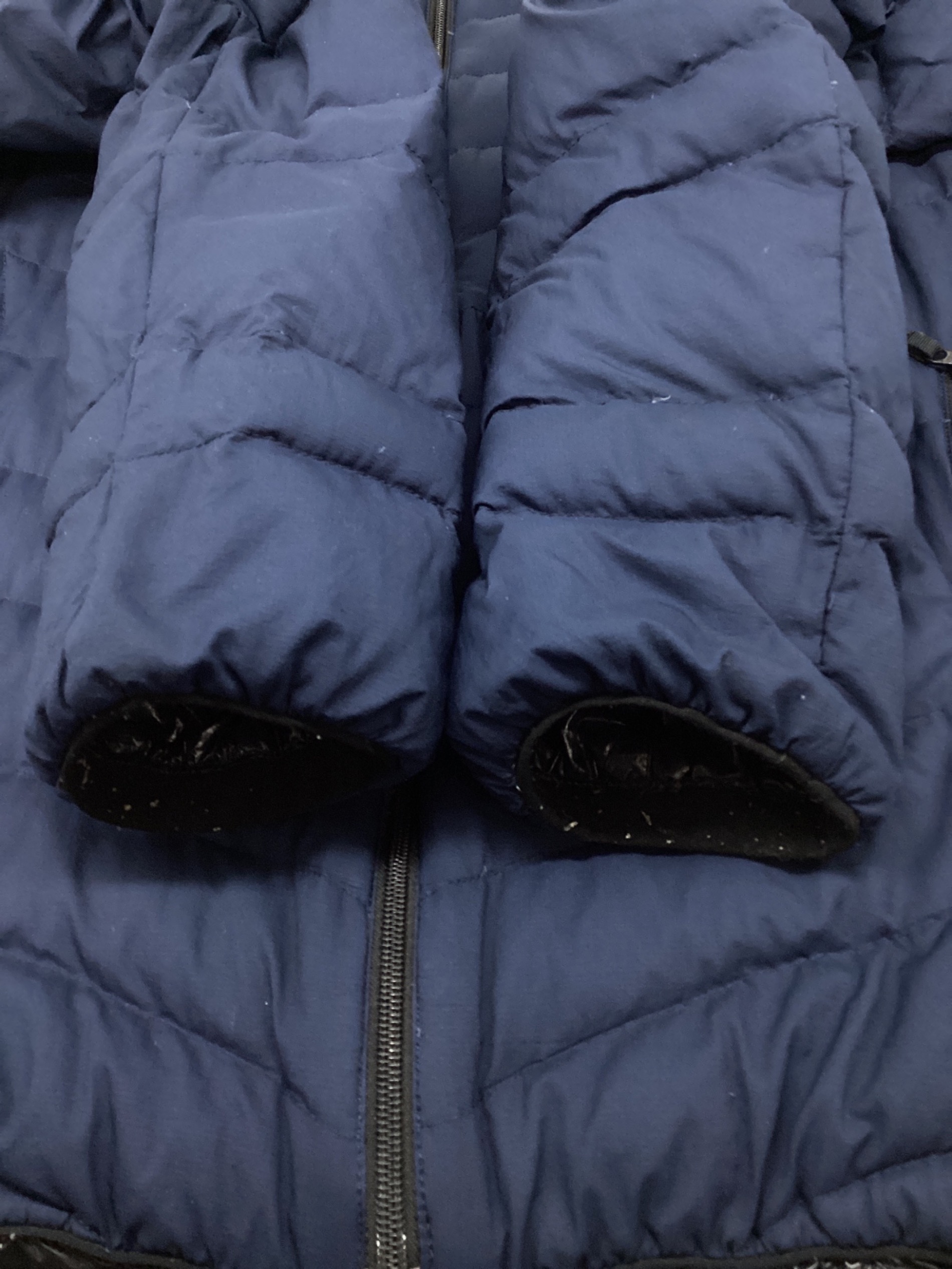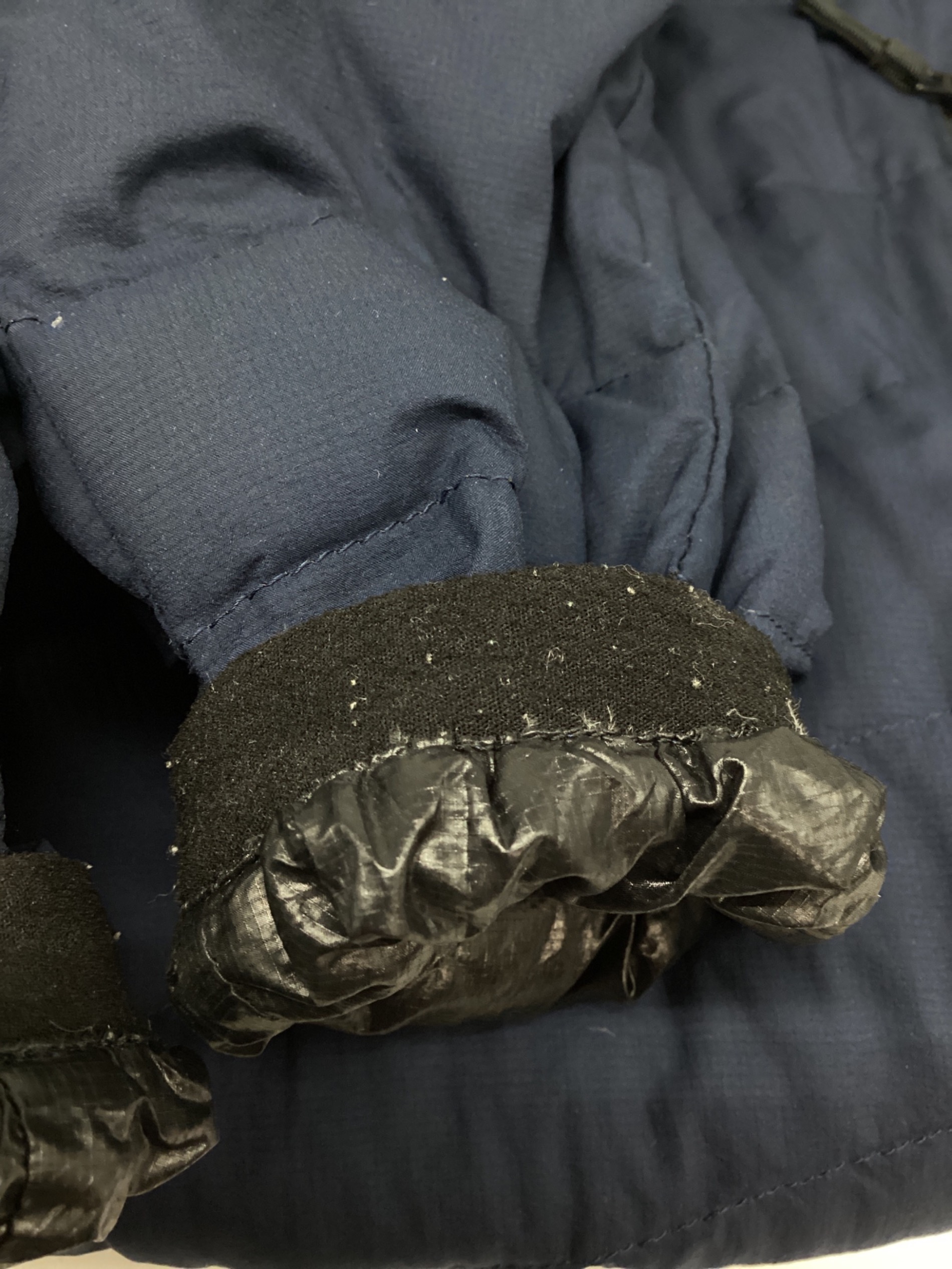 状態 こちらの商品は中古品の為、袖口内側に毛玉、ジッパー塗装ハガレや補助フィルムの劣化、本体全体にダウンの突出がございます。店頭にて展示販売を行っている為、記載に無い細かなキズ、汚れが見受けられる場合がございます。