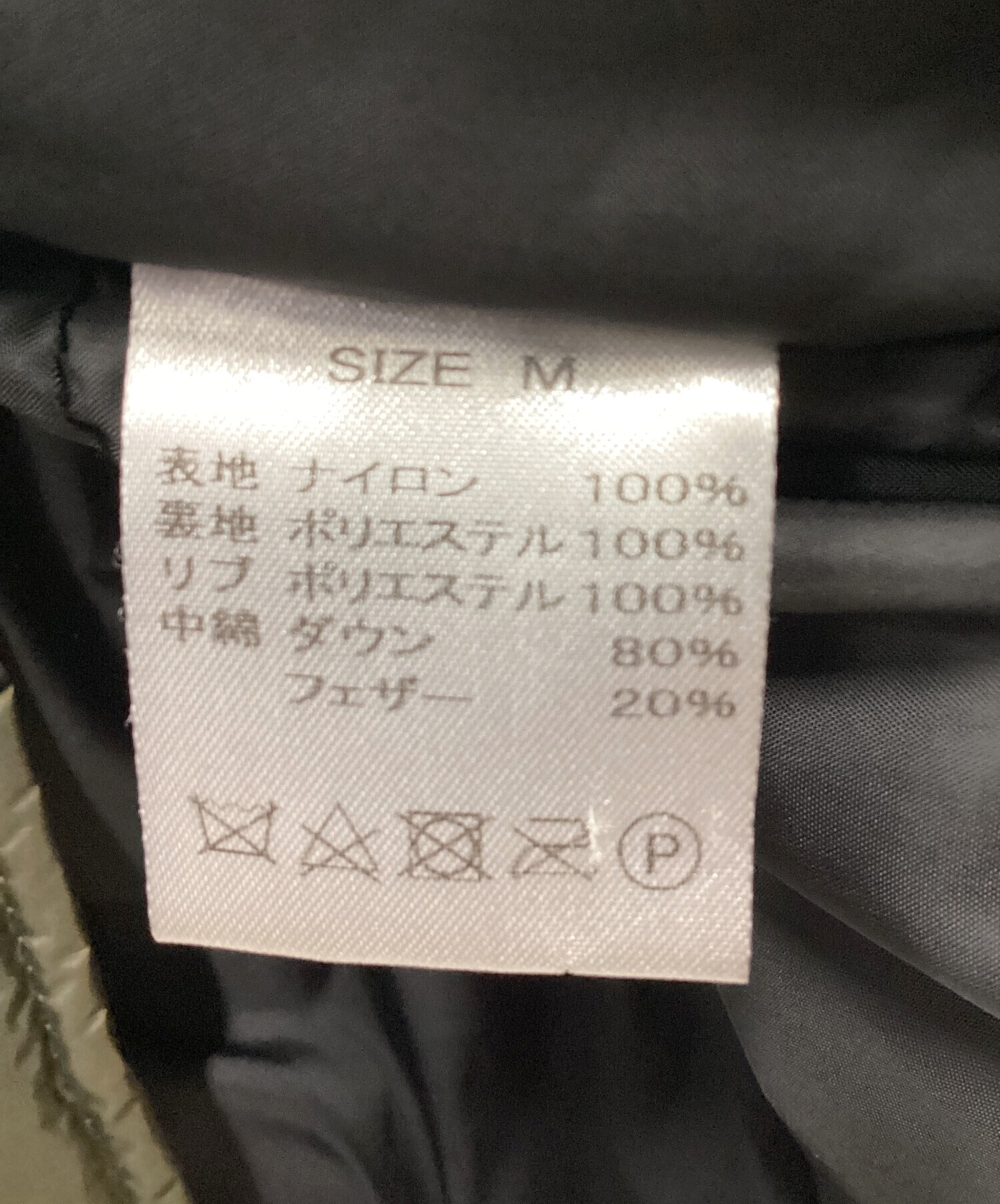 | 素材 | 表地:ナイロン 100% 裏地:ポリエステル 100% リブ:ポリエステル 100% 中綿:ダウン 80% フェザー 20% |