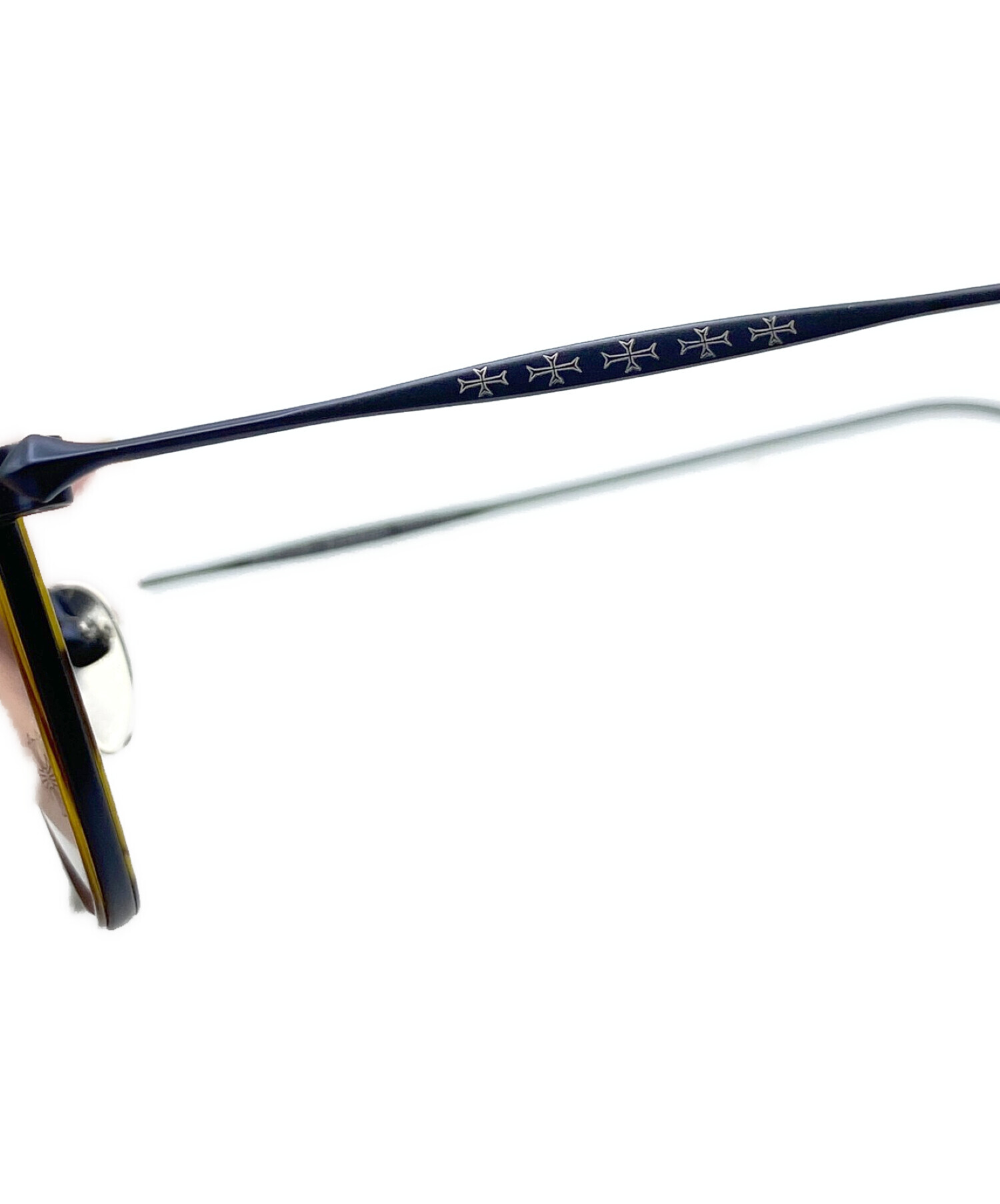 | スタッフコメント | テンプルにクロスのシルバーチャームがデザインされたボストンサングラスです。ブラック×ゴールドのフレームが特徴です。 |