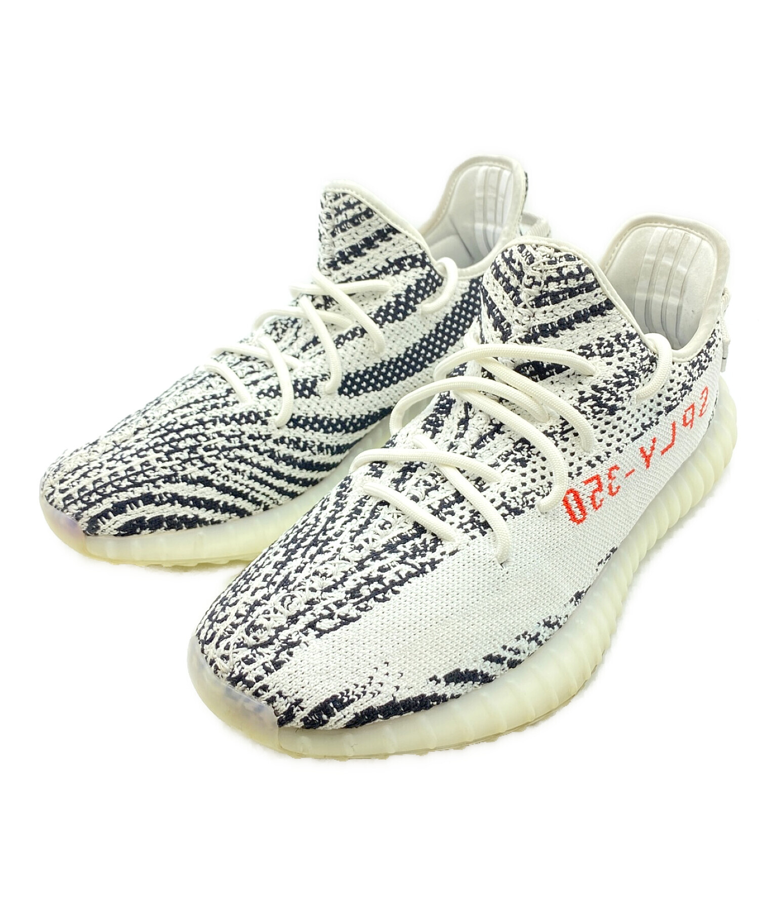 | スタッフコメント | 定番アイテムであるYEEZY BOOST 350 V2です。アッパーのメッシュ生地やボリュームのあるソールが特徴的なスニーカーです。アッパーのゼブラ柄もポイントです。 |