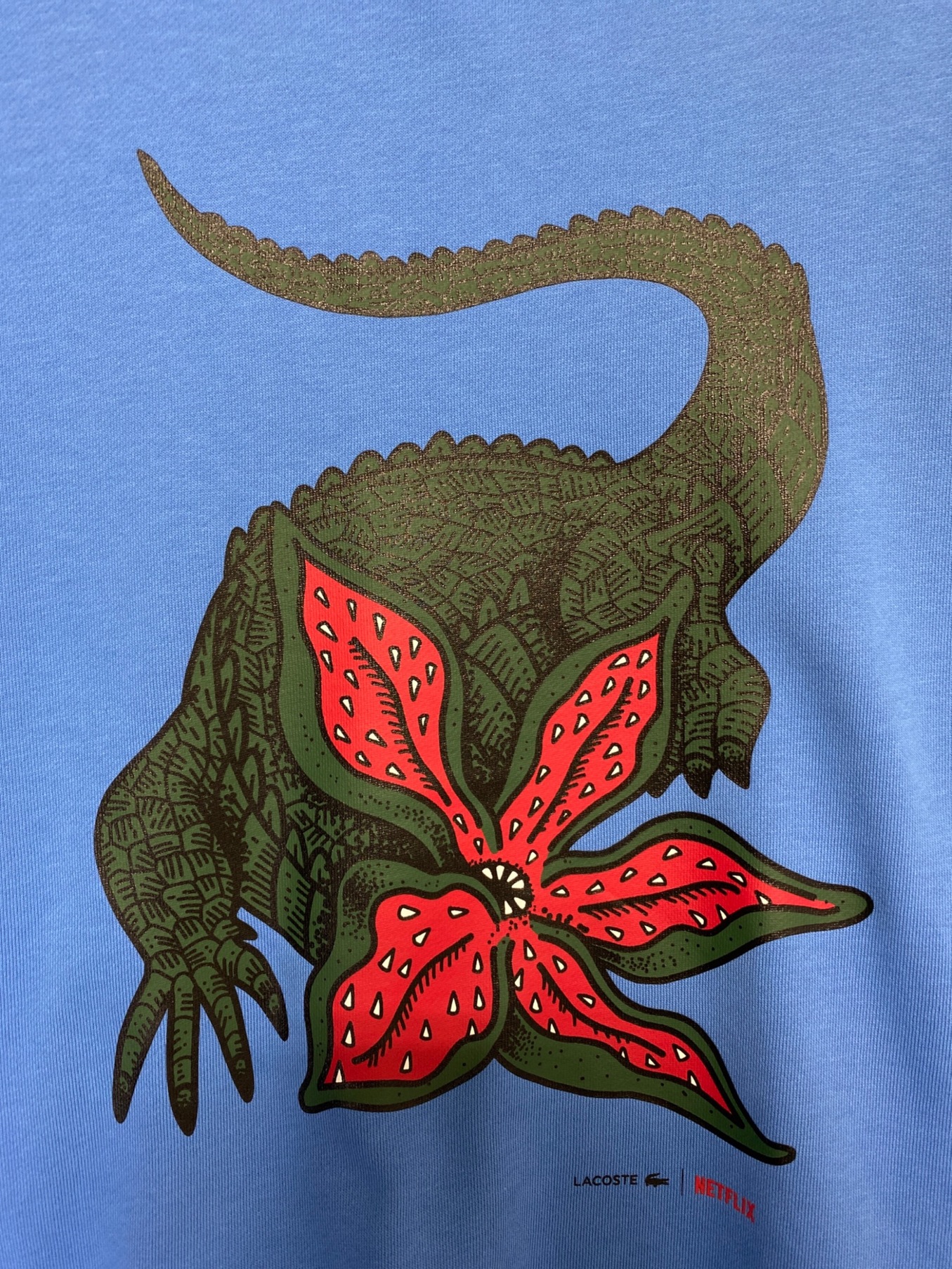 | スタッフコメント | LACOSTEとNetflixのコラボによるクルーネックスウェットです。フロントにストレンジャー・シングスのデモゴルゴンがプリントされていて、LACOSTEのワニとコラボしております。ストレンジャーシングス好きにはたまらないアイテムです。 |