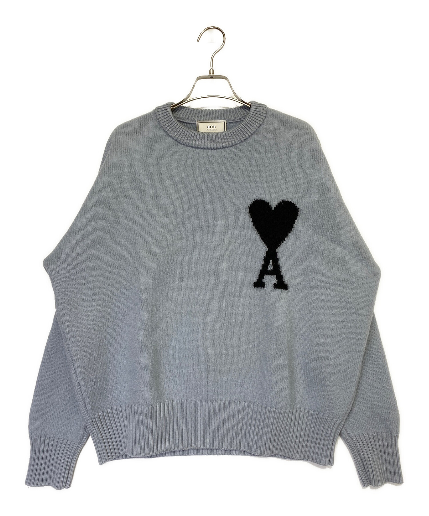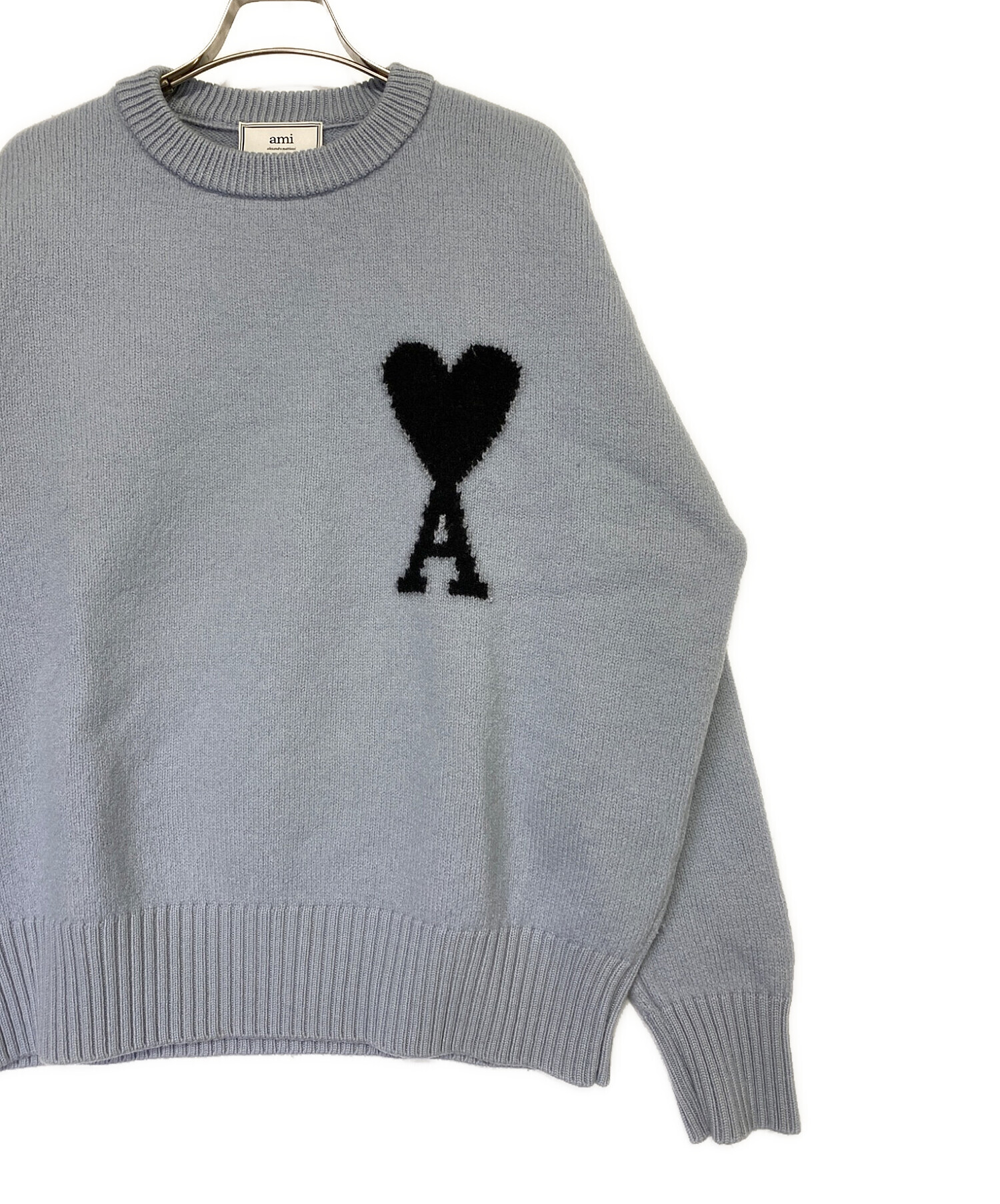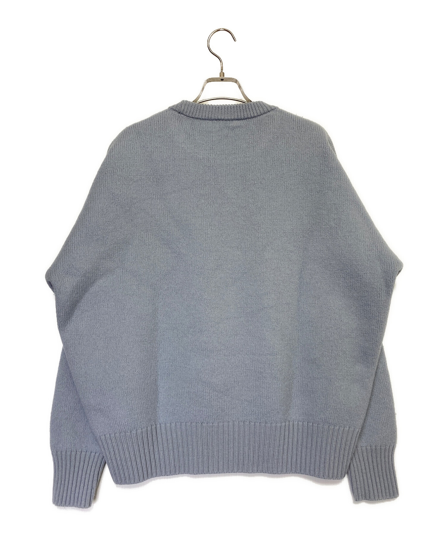 | スタッフコメント | こちらスカイブルーのニットになります。フロントにはamiのロゴが施されたアイテムになります。シルエットにもこだわっており綺麗なシルエットのニットになります。またウールを使用している為着心地、保温性に優れたアイテムになります。 |