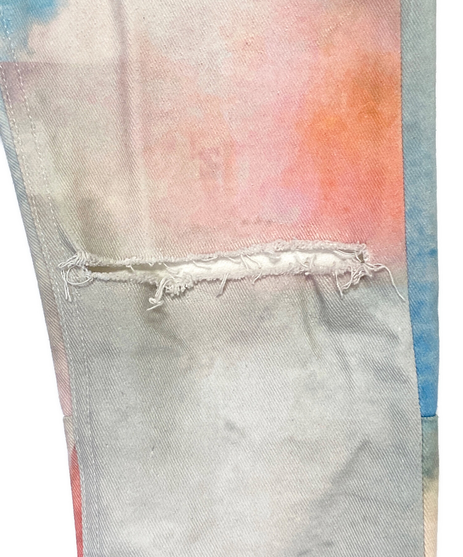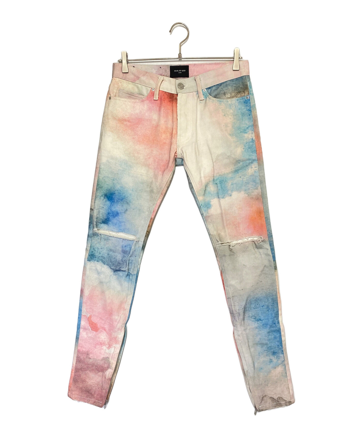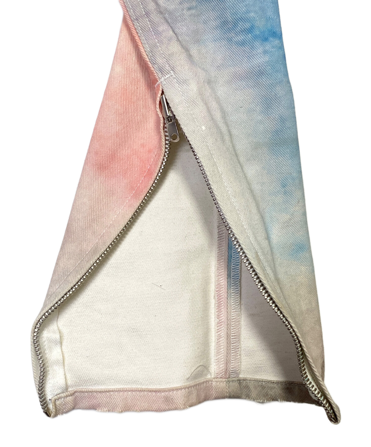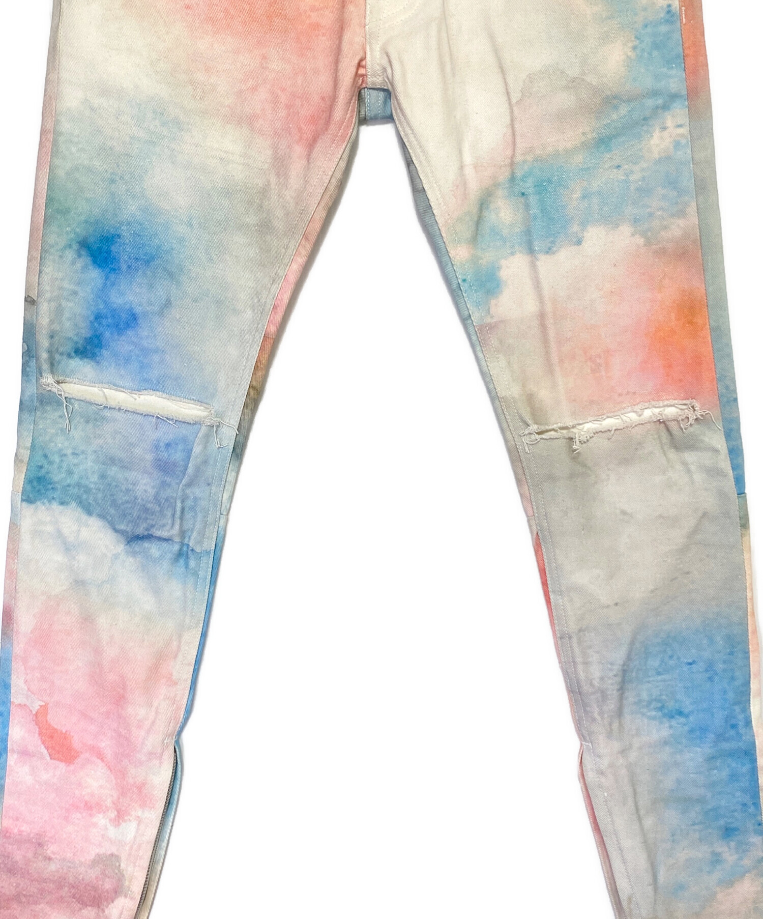 | スタッフコメント | 水彩画の様なデザインにダメージ加工を施したデニムパンツです。裾にはジップを搭載しており、シルエットの変化を楽しめます。細身のスタイリッシュなシルエットもポイントです。 |