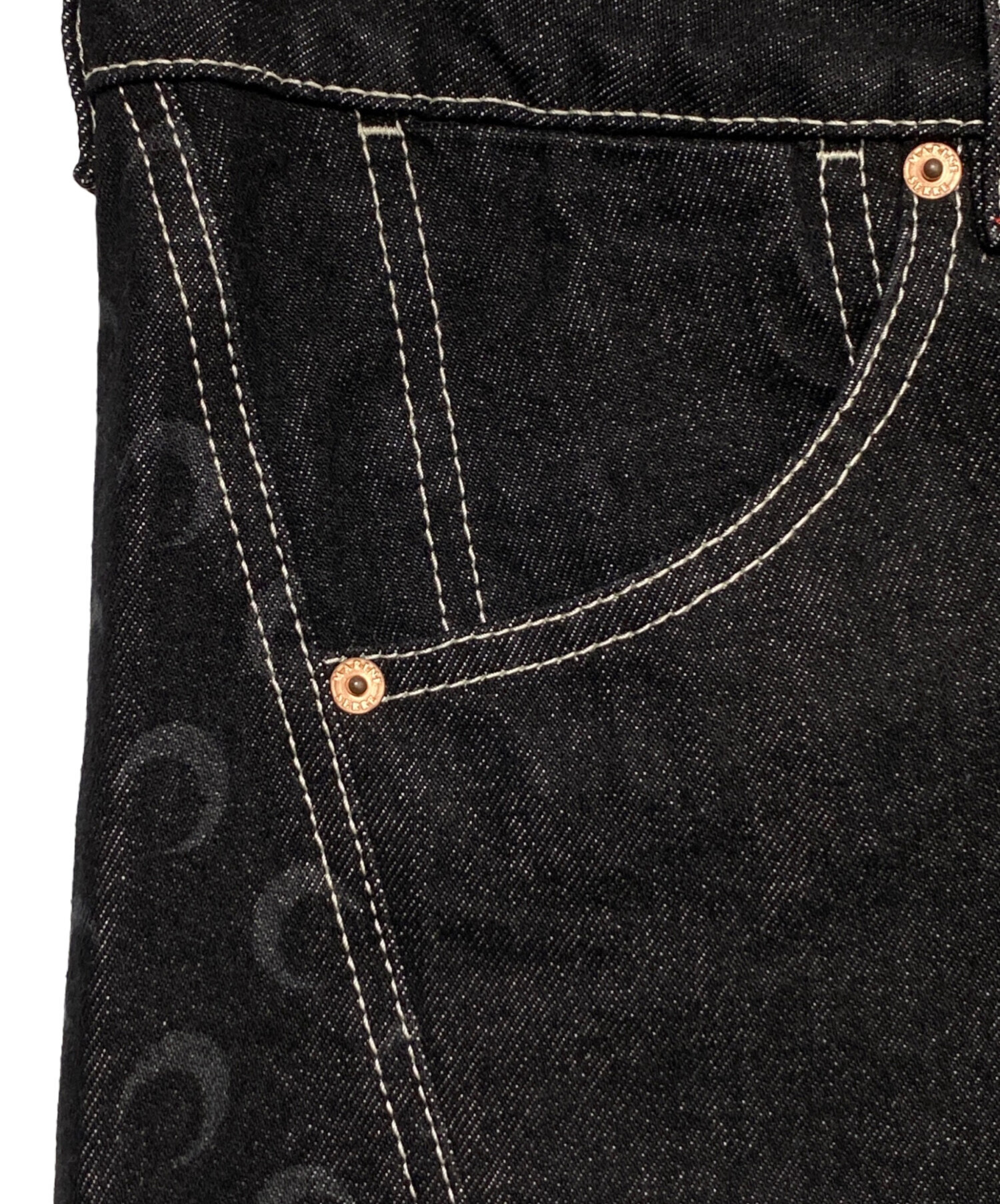 | スタッフコメント | アイコニックなムーンロゴをあしらったデニムパンツです。独特の風合いとデザイン性が魅力で、個性を放ちます。程よくフィットするシルエットで、コーディネートにモード感をプラスする一本です。 |