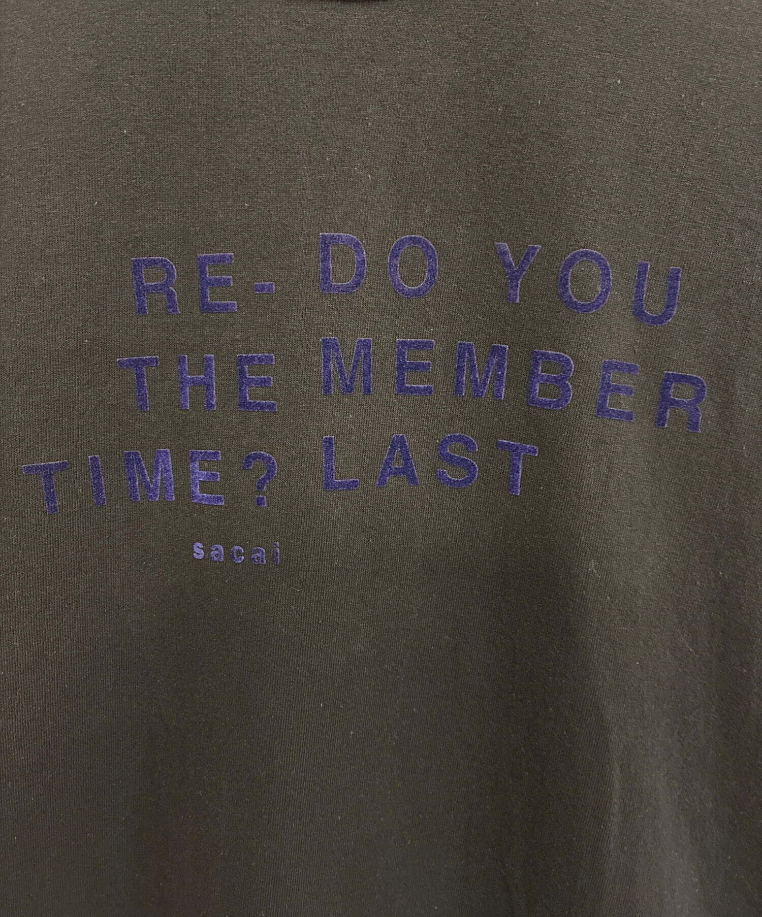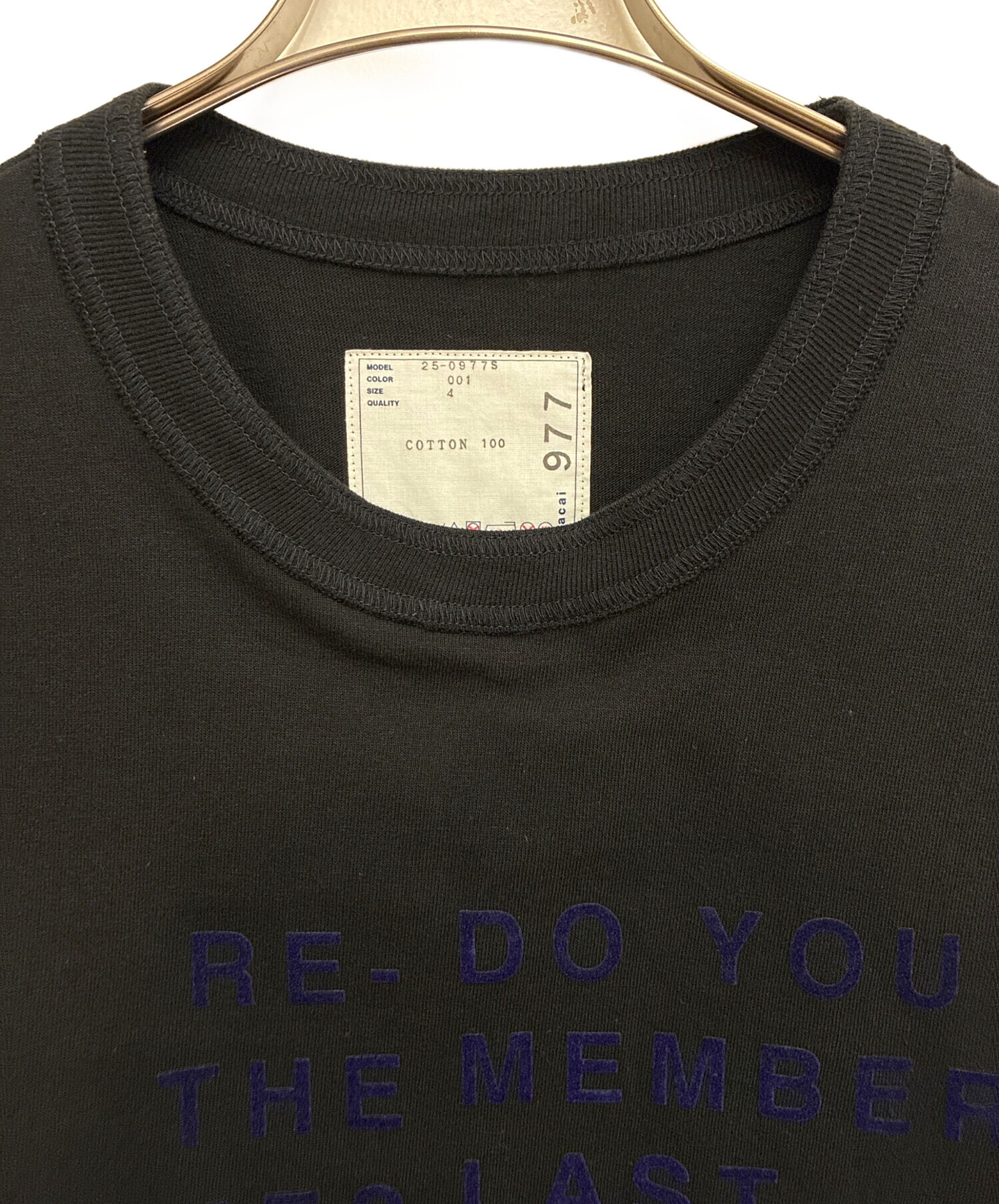 | スタッフコメント | フロントにメッセージがデザインされたTシャツになります。sacaiらしくシンプルながら主張が感じれるアイテムとなっております。黒の生地に青色の刺繍が落ち着いた雰囲気が出ていますが他にないシンプルさが魅力的です。 |