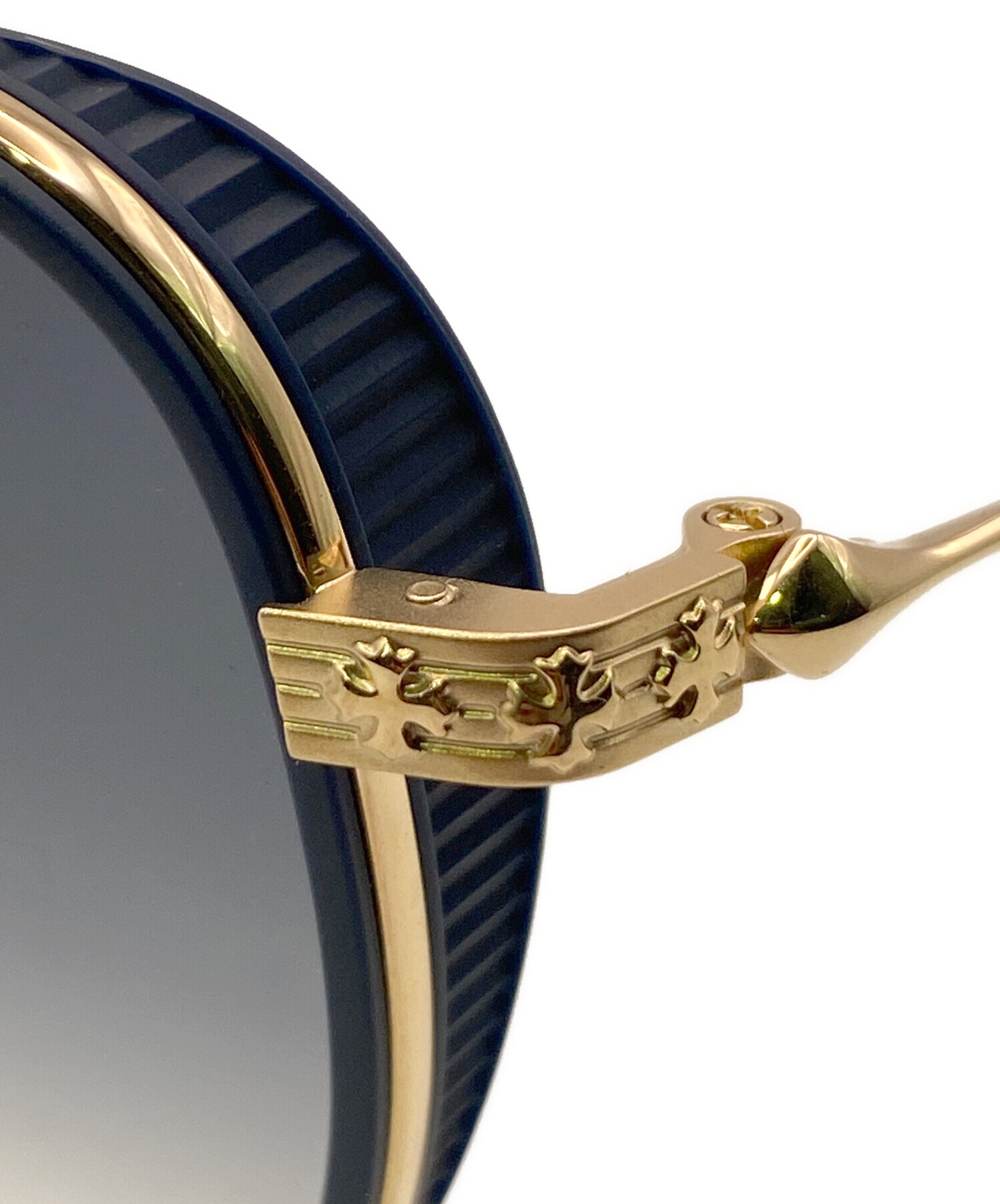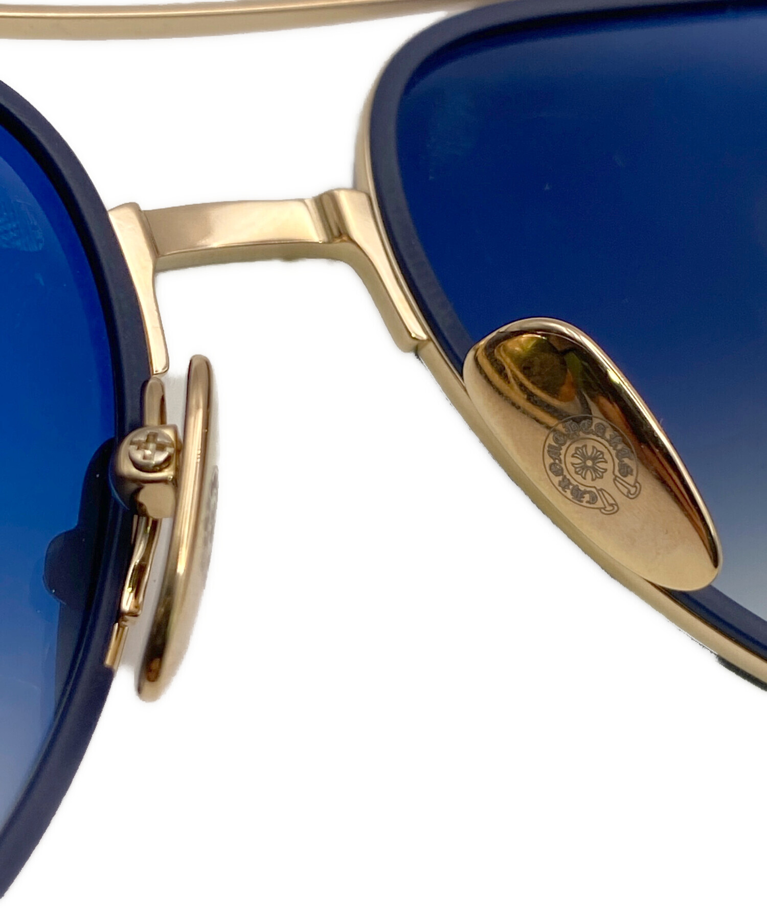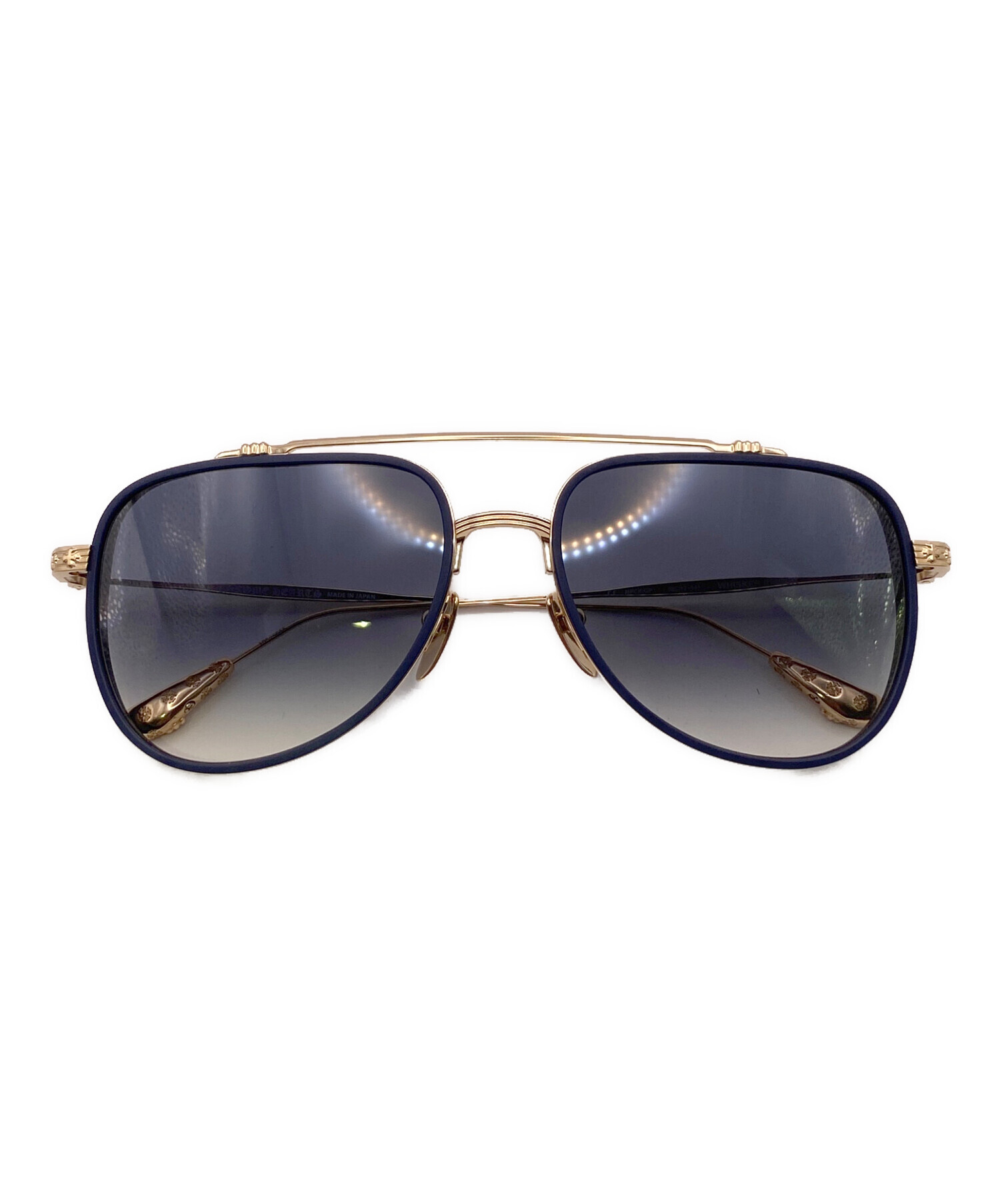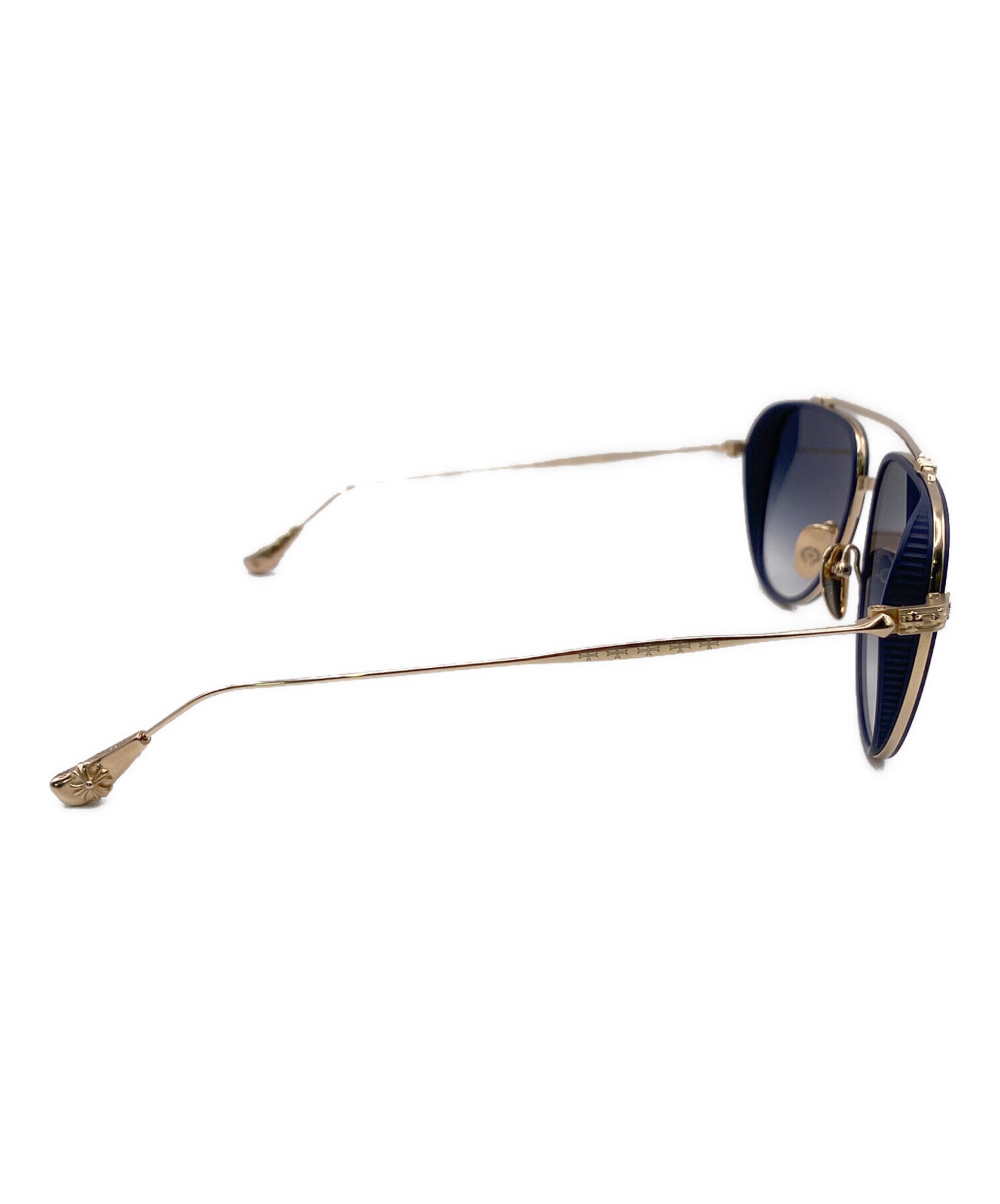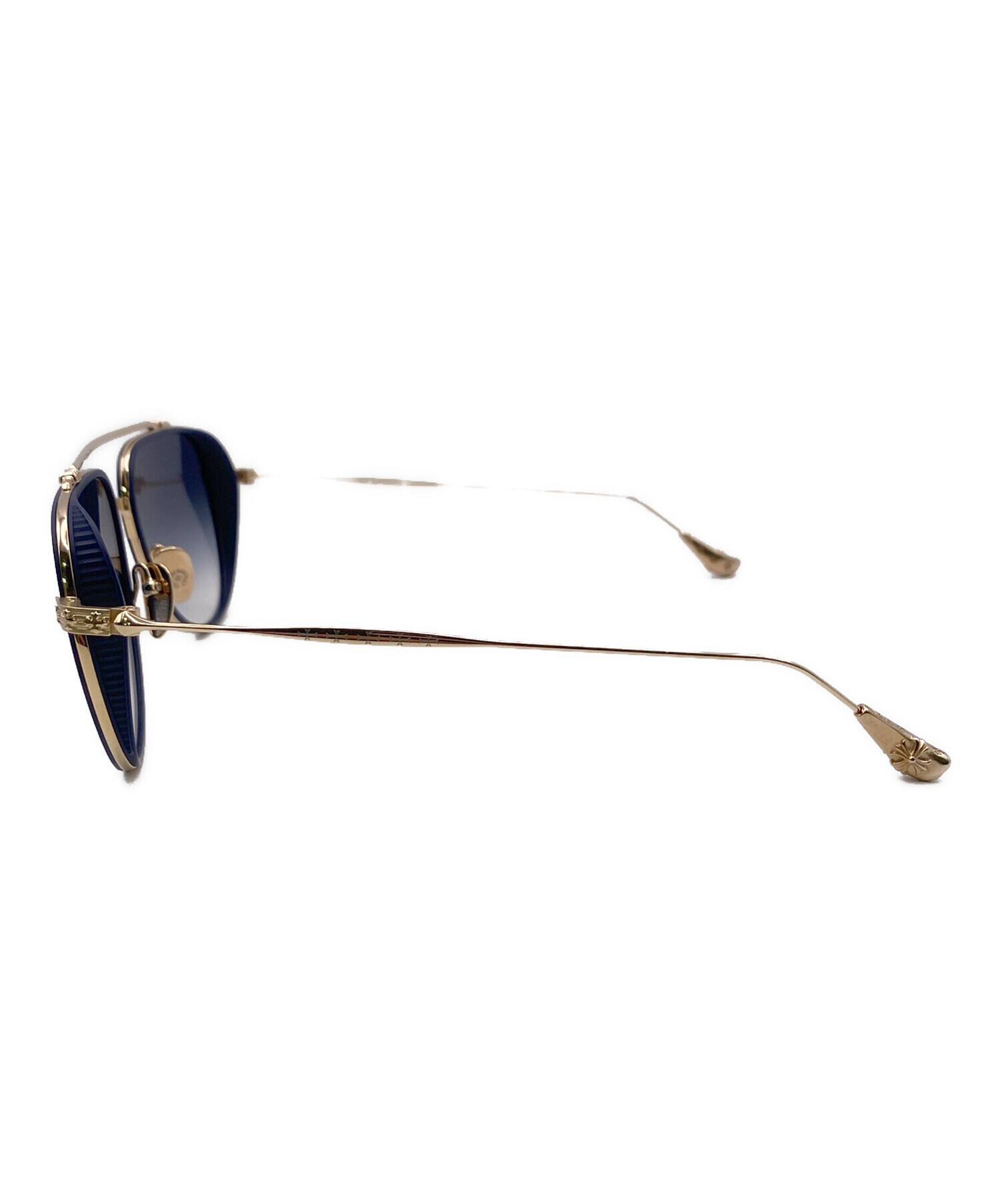 スタッフコメント ティアドロップ型のCHROME HEARTSのサングラスです。ゴールドとシックなネイビーのカラーリングが用いられており、各所にはクロスモチーフなどが施されているため、かけるだけでコーディネートを引き締めてくれること間違いなしの逸品です。
