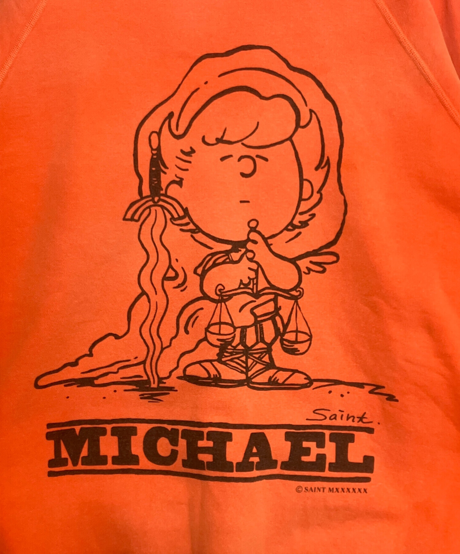 | スタッフコメント | SAINT MICHAELの「CRW N SWT」。ヴィンテージライクな風合いと独特のプリント表現が特徴で、ブランドの世界観をしっかりと感じられるスウェットです。程よく力の抜けたシルエットで、スタイリングに取り入れやすい一着となっています。 |