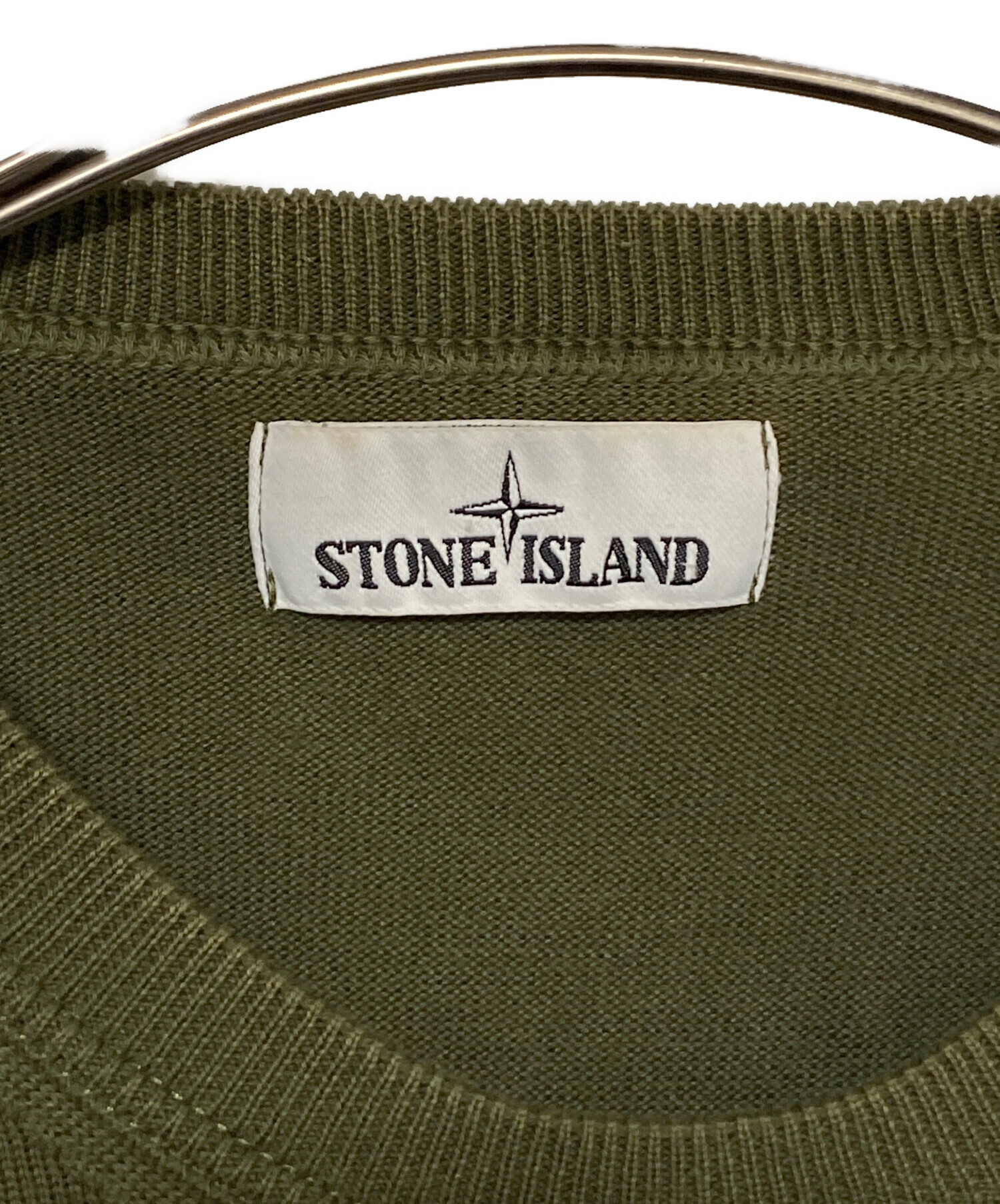 • STONE ISLAND(ストーンアイランド)STONE ISLAND (ストーンアイランド) Warpen Sweater オリーブ サイズ:XLの古着・服飾アイテム 補修有