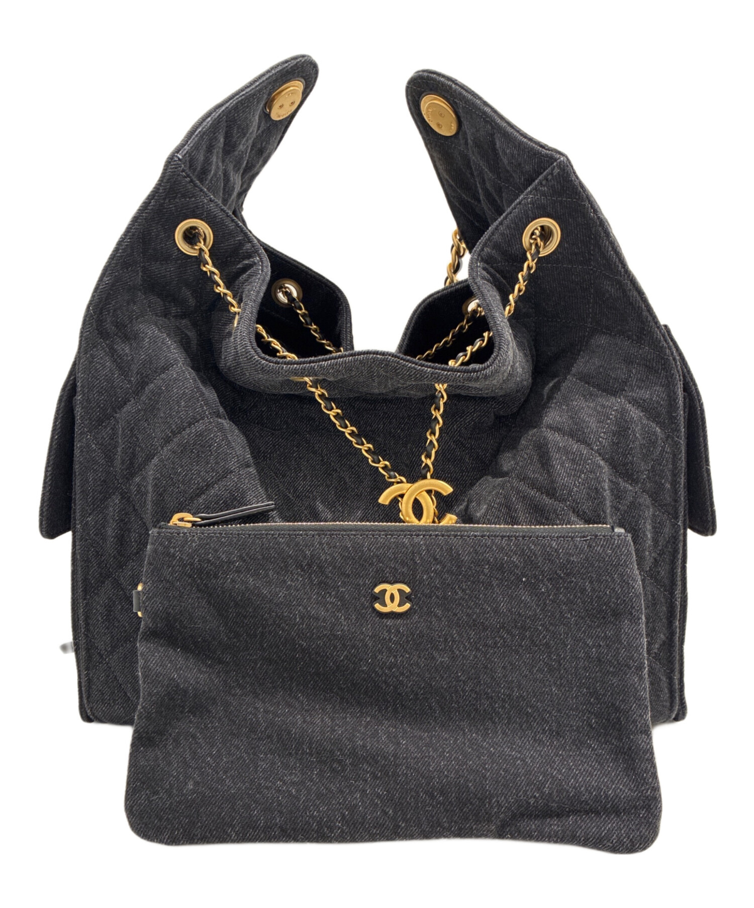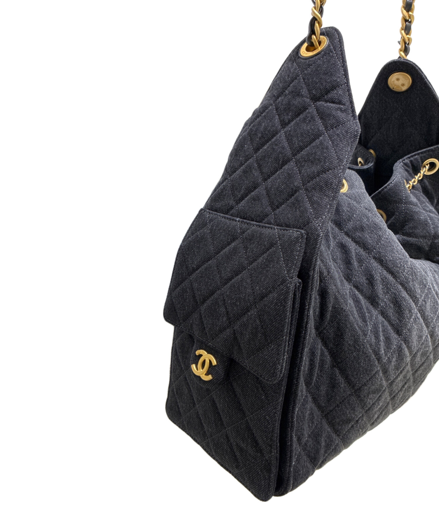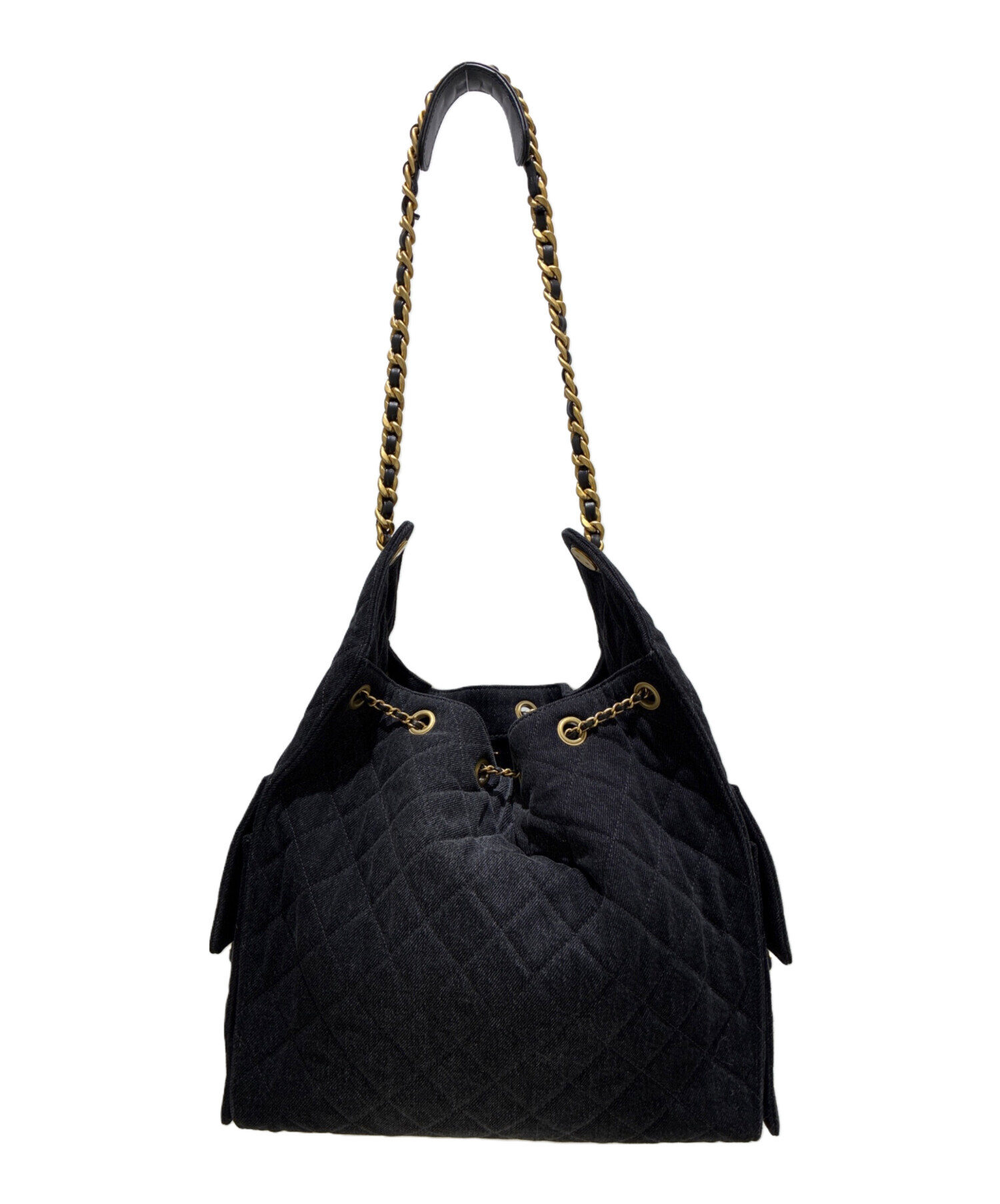 スタッフコメント 巾着部分を絞ることで表情が変わるCHANEL25 ブラックデニムでございます。アイコニックなココマークがワンポイントになっています。ブラックのシックな色味が幅広いスタイルに馴染み、上質な素材感と洗練されたフォルムが大人の品格を引き立てます。間口が広く開き、ポケットが充実しているため、荷物が多い方にも重宝できるバッグになっております。