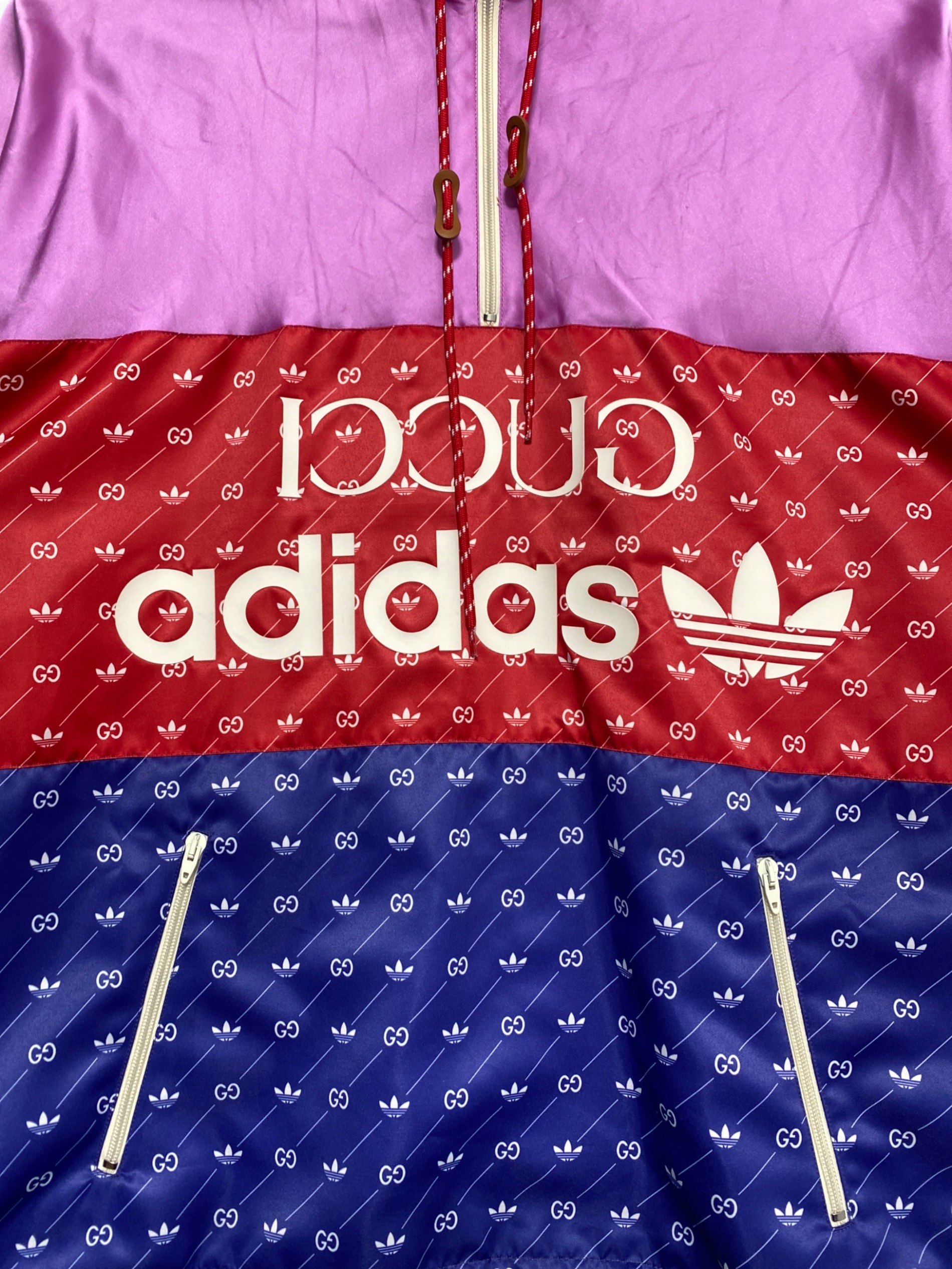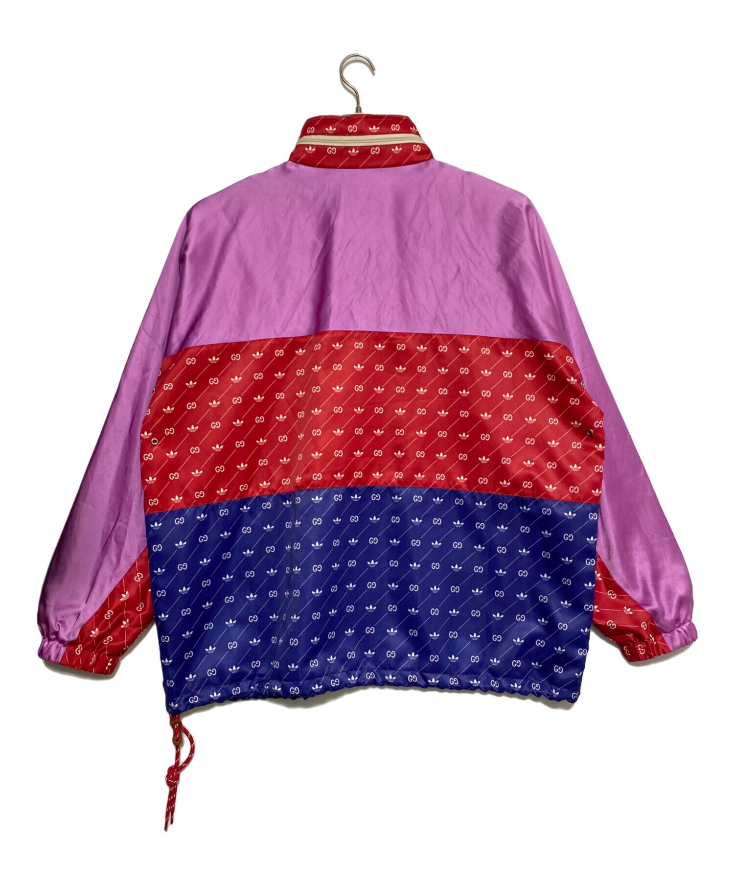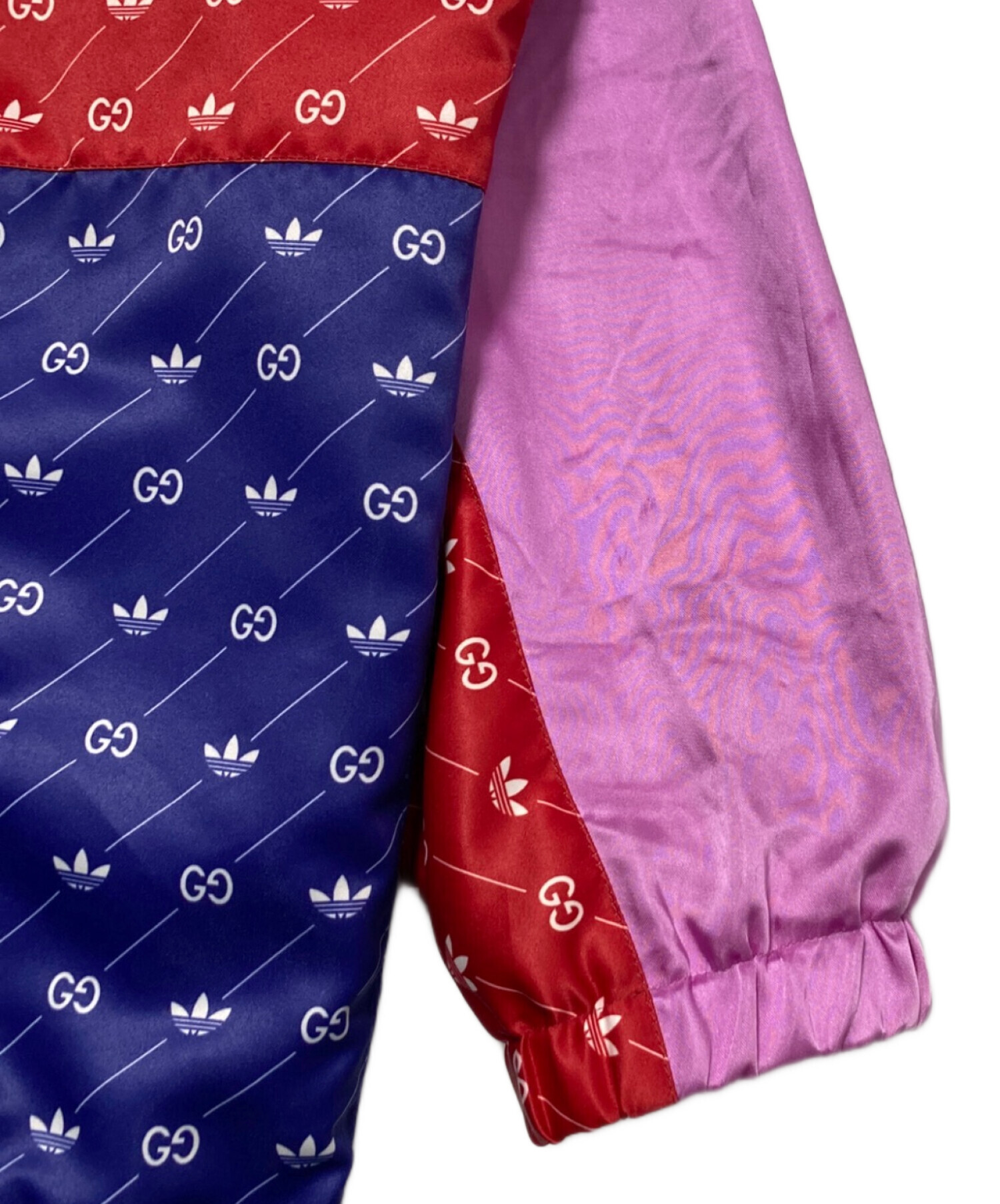 スタッフコメント GUCCIとadidasのコラボレーションを象徴するアノラックジャケット。全体にあしらわれたGGモノグラムと大胆なカラーブロック、フロントのロゴデザインが強い存在感を放つ一着です。軽量なナイロン素材を使用し、ストリート感とラグジュアリーさを兼ね備えた仕上がり。一枚でスタイリングの主役となり、デニムやトラックパンツなど幅広いコーディネートに対応します。