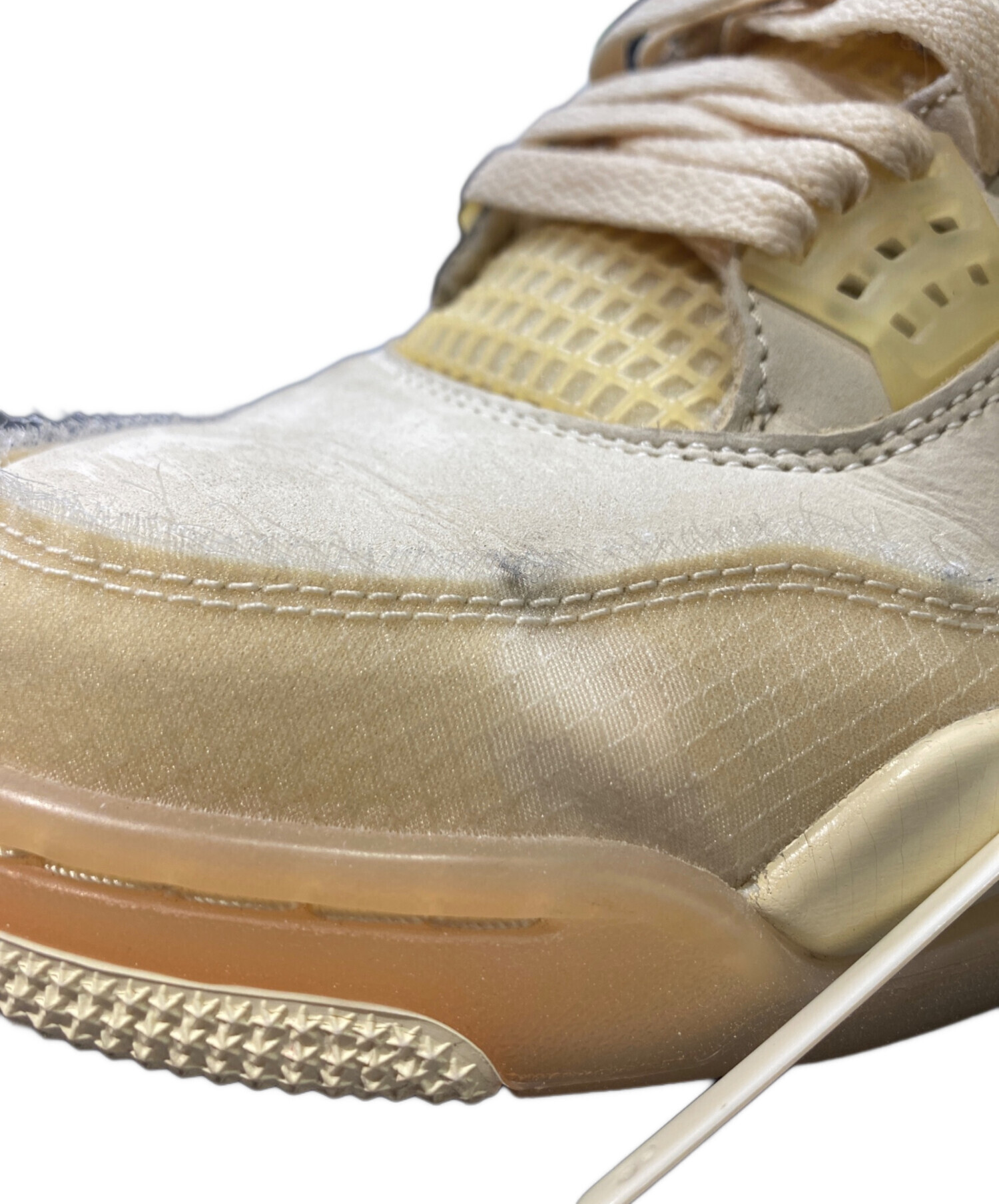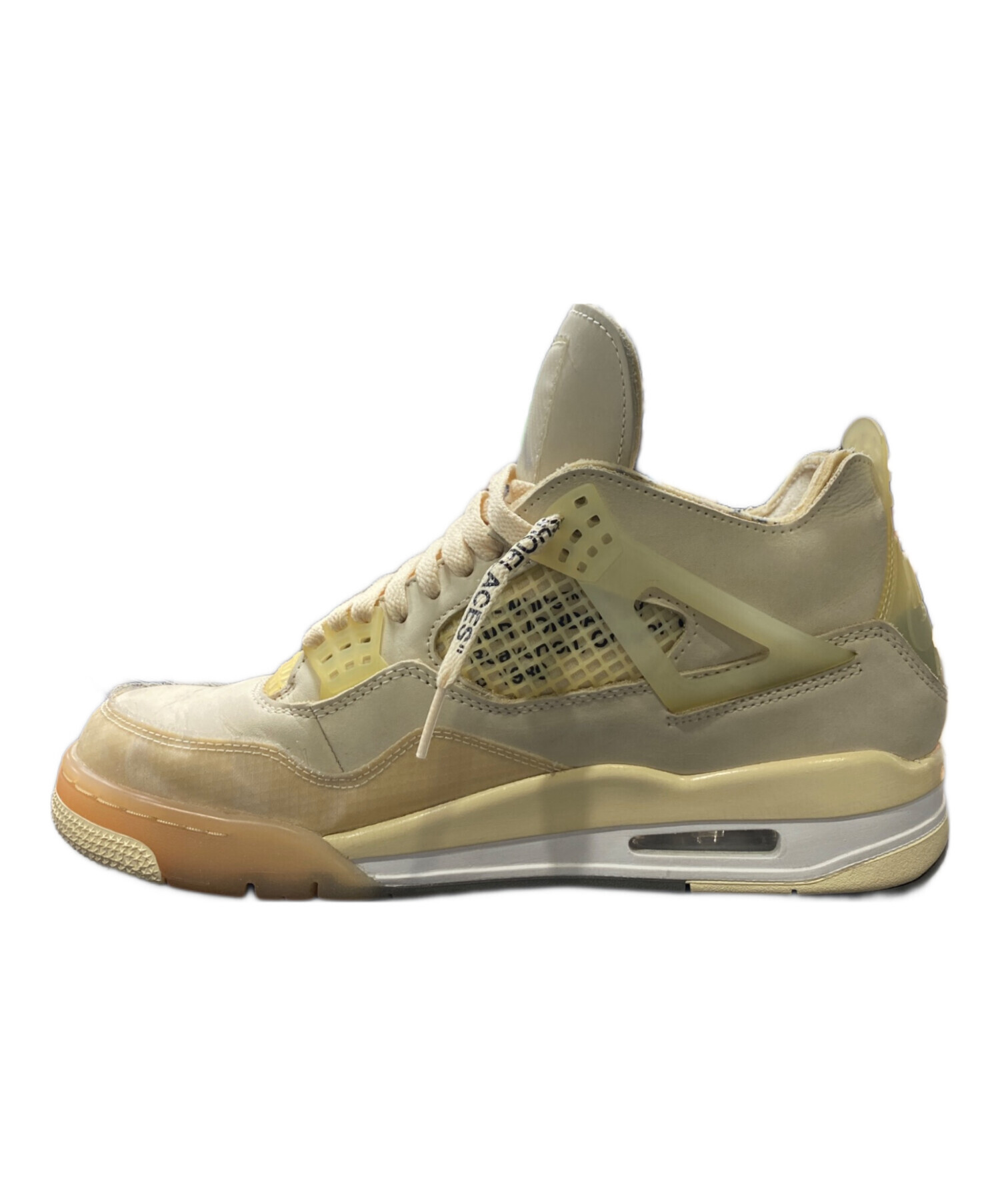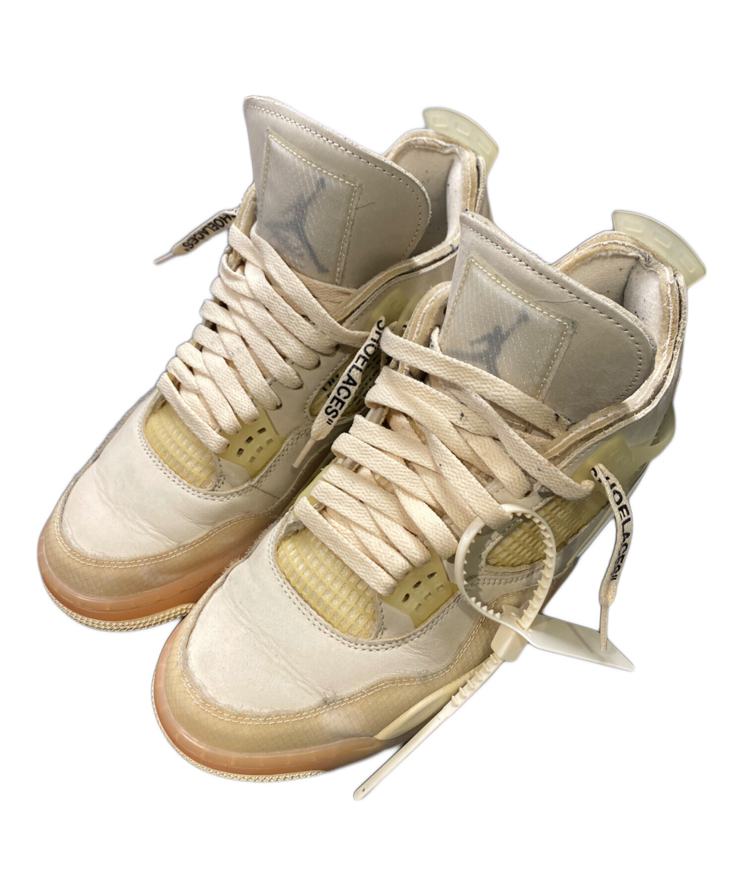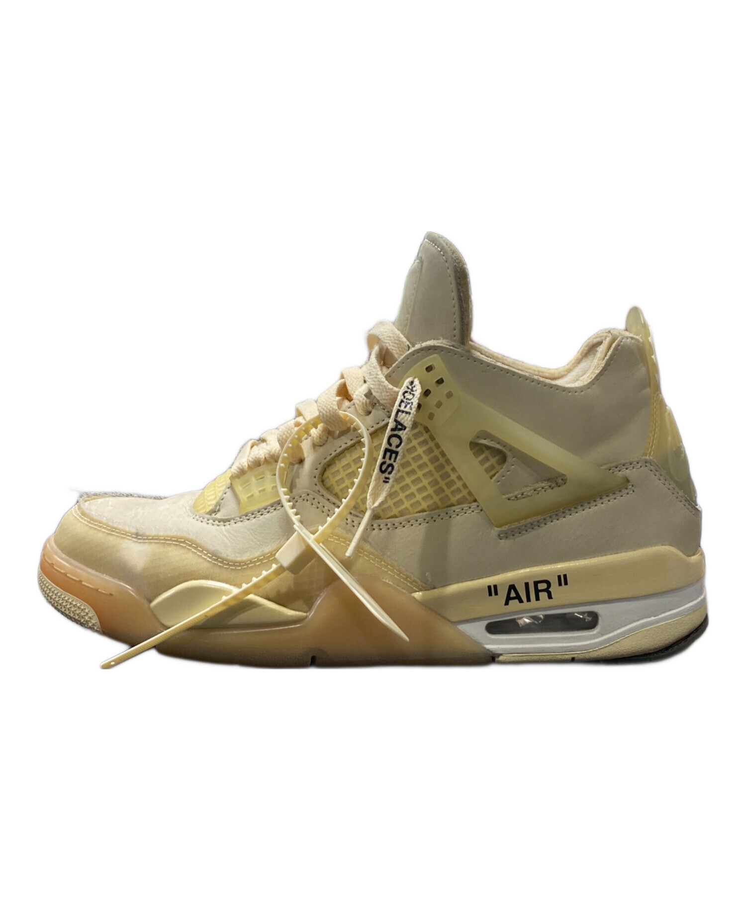 | スタッフコメント | 生成りがかった“Sail”カラーを基調に、半透明パーツやテキストデザインなどOff-Whiteらしい意匠を随所に配置。クラシックなAJ4のシルエットに実験的な要素を掛け合わせ、足元に強い存在感を与える仕上がりの一足です。 |