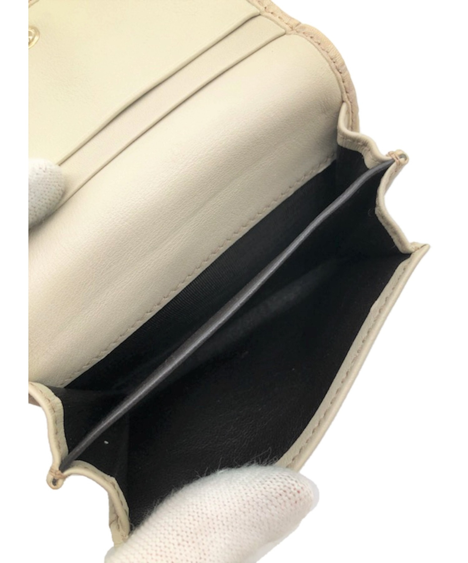 【スタッフコメント】グッチシマレザーを使用したラブリーラインのカードケースです。ハートの金具が特徴的なデザインです。