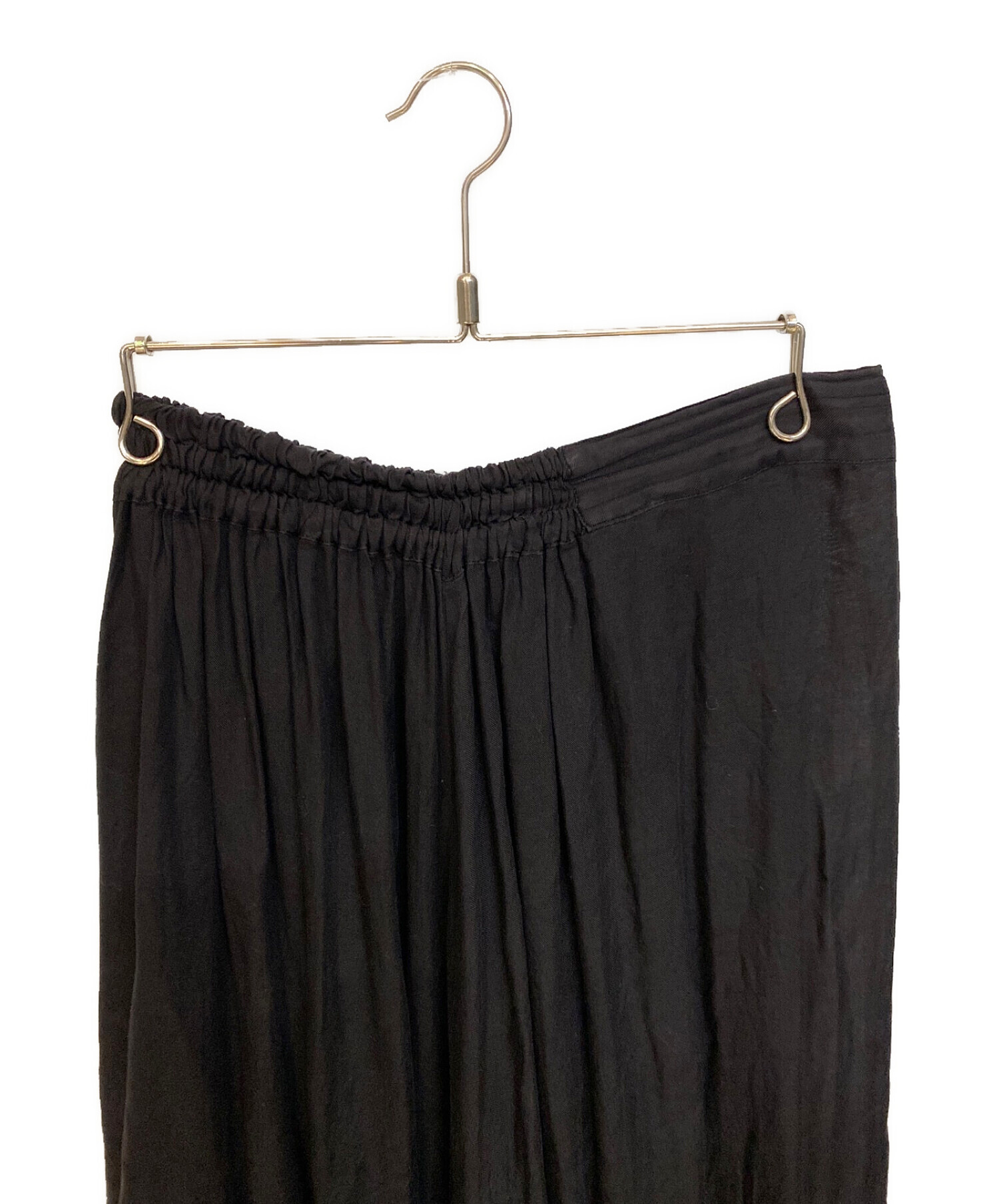 | スタッフコメント | シンプルなブラックカラーでプリーツになっているワイドパンツです。かなりゆったりしたワタリ幅でスカートのようなシルエットになっています。パンツながらスカートのようなドレープ感をお楽しみいただけます。 |