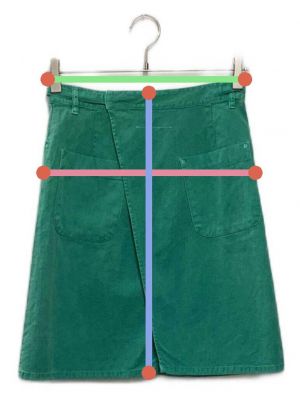 当サイトでは商品の表記サイズの他に、出品商品を採寸しサイズを記載しております。また、実際のアイテム画像を使用した計測とイラストを使用した計測の2パターンがございます。